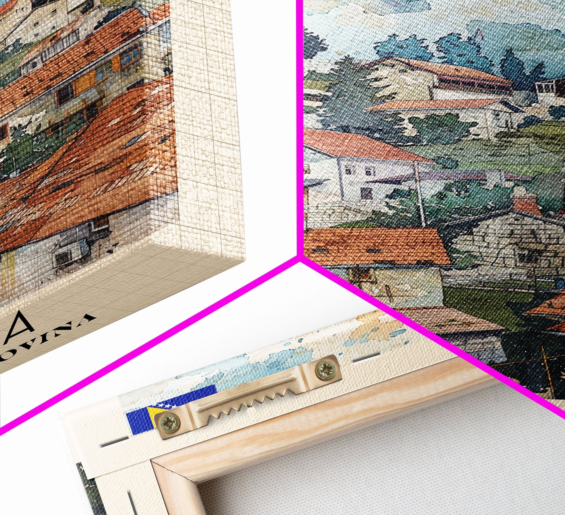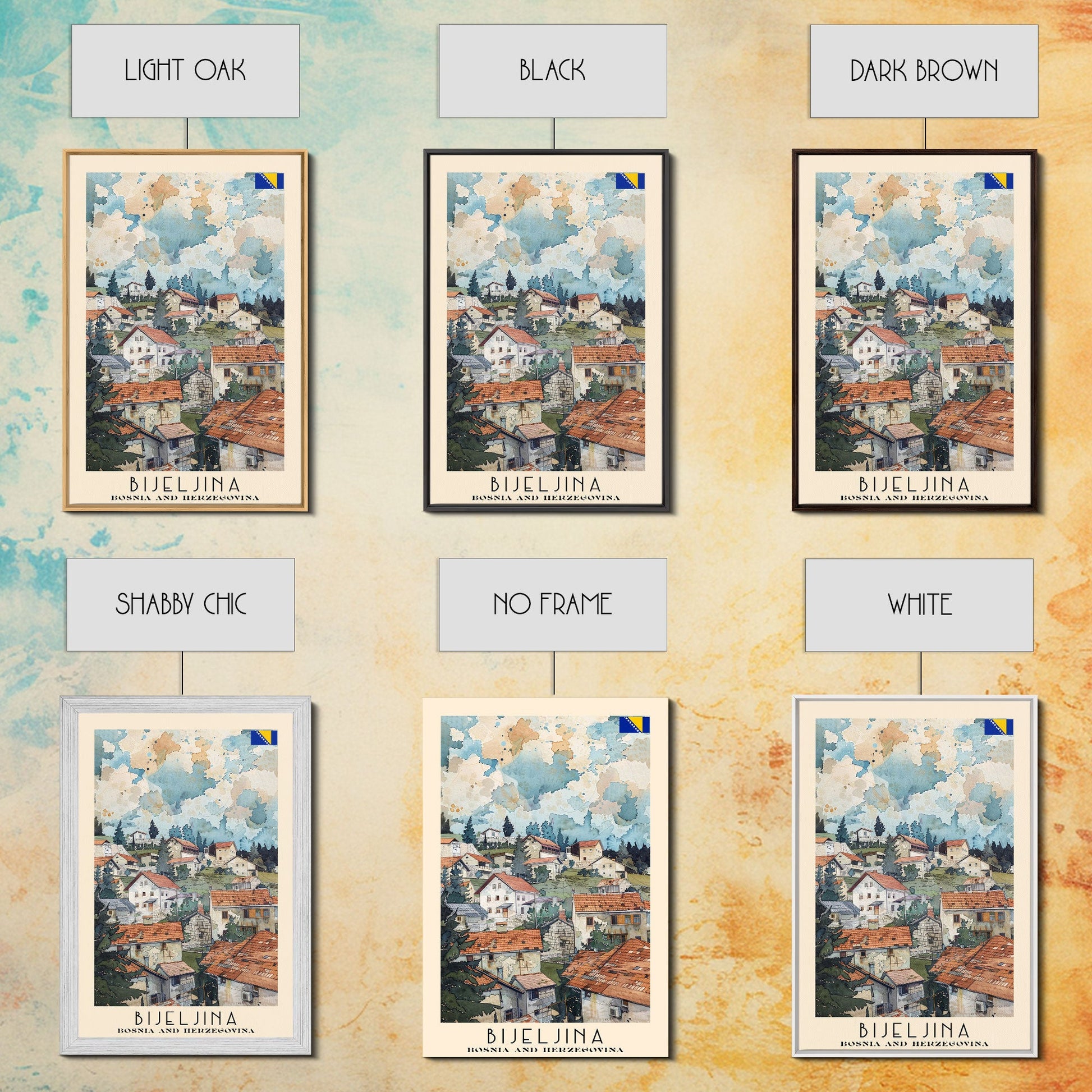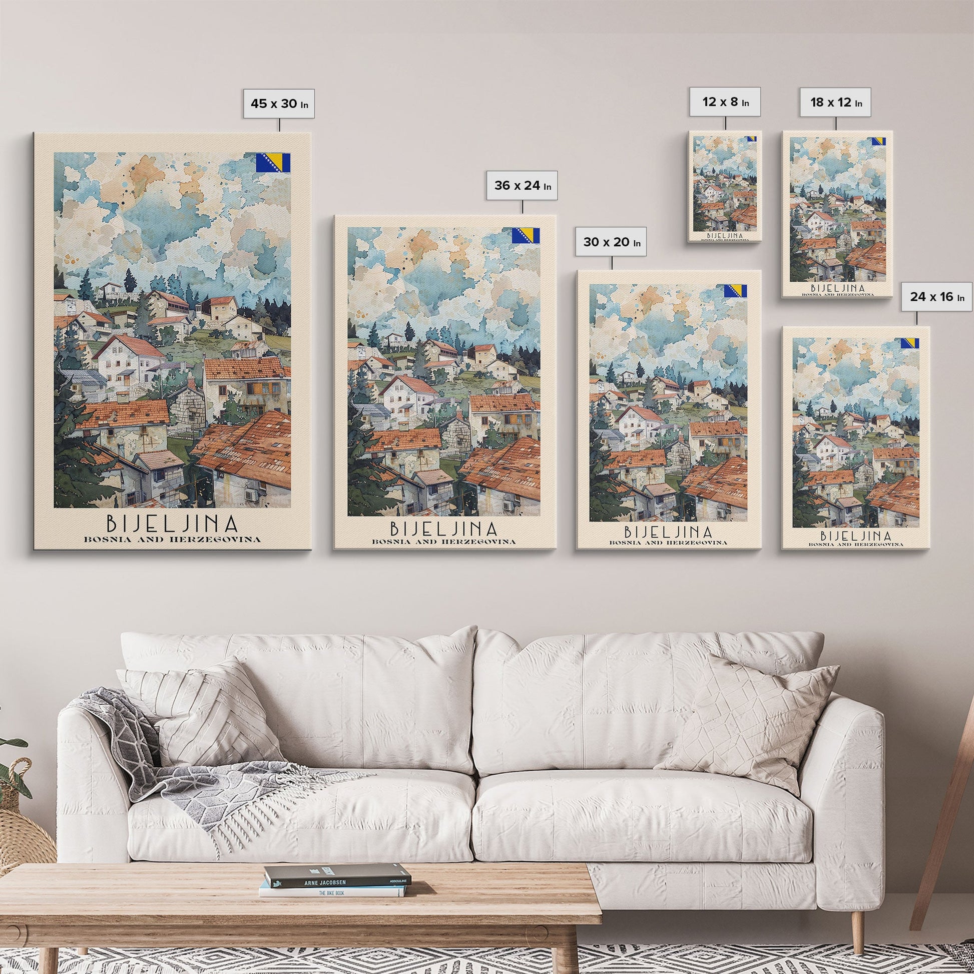 Bijeljina Bosnia and Herzegovina Travel Poster Framed Canvas Print, Watercolor Art, Home Decor, Wall Art, Travel Print