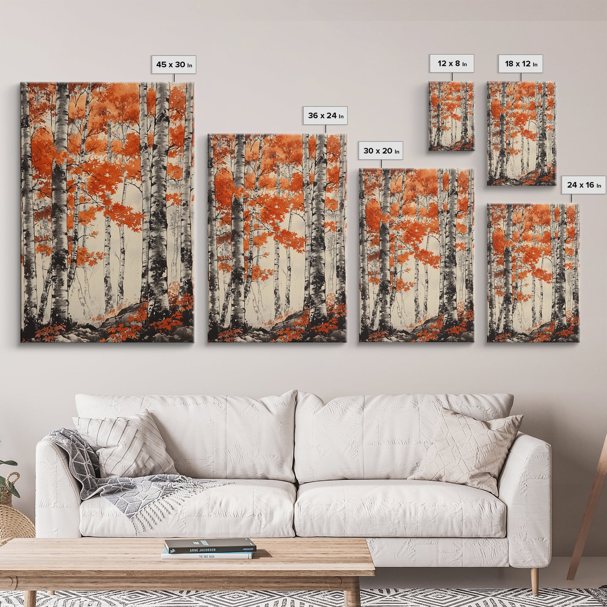 Birch Forest Art Print Autumn Aspen Trees Wall Art Birches Canvas Print Watercolor Landscape Colorado Art Neutral Fall Forest Painting