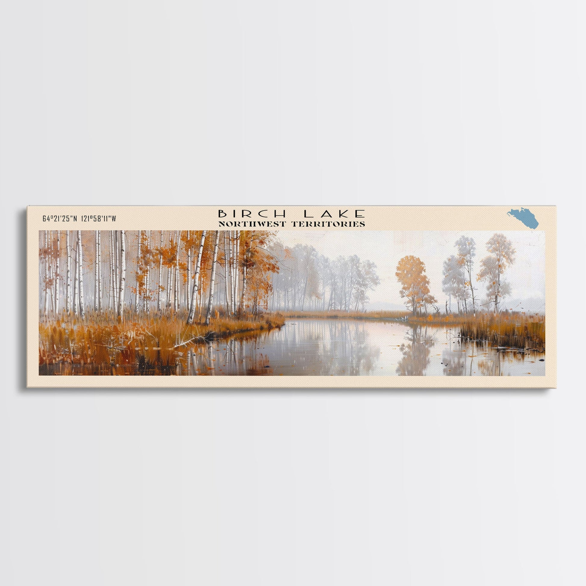Birch Lake Framed Canvas Print, Panoramic Lake House Decor, Scenic View, Travel Poster, Rustic Art, Lake Painting