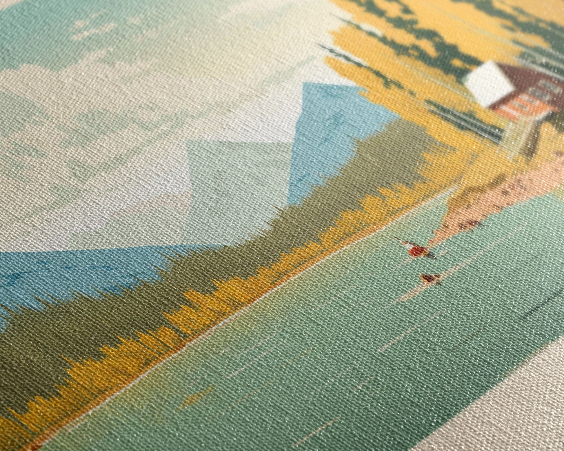 Birch Northwest Territories Framed Canvas Print, Panoramic Wall Art, Midcentury Modern, Pop Art, Travel Poster, Scenic Living Room Decor, Lake House Art