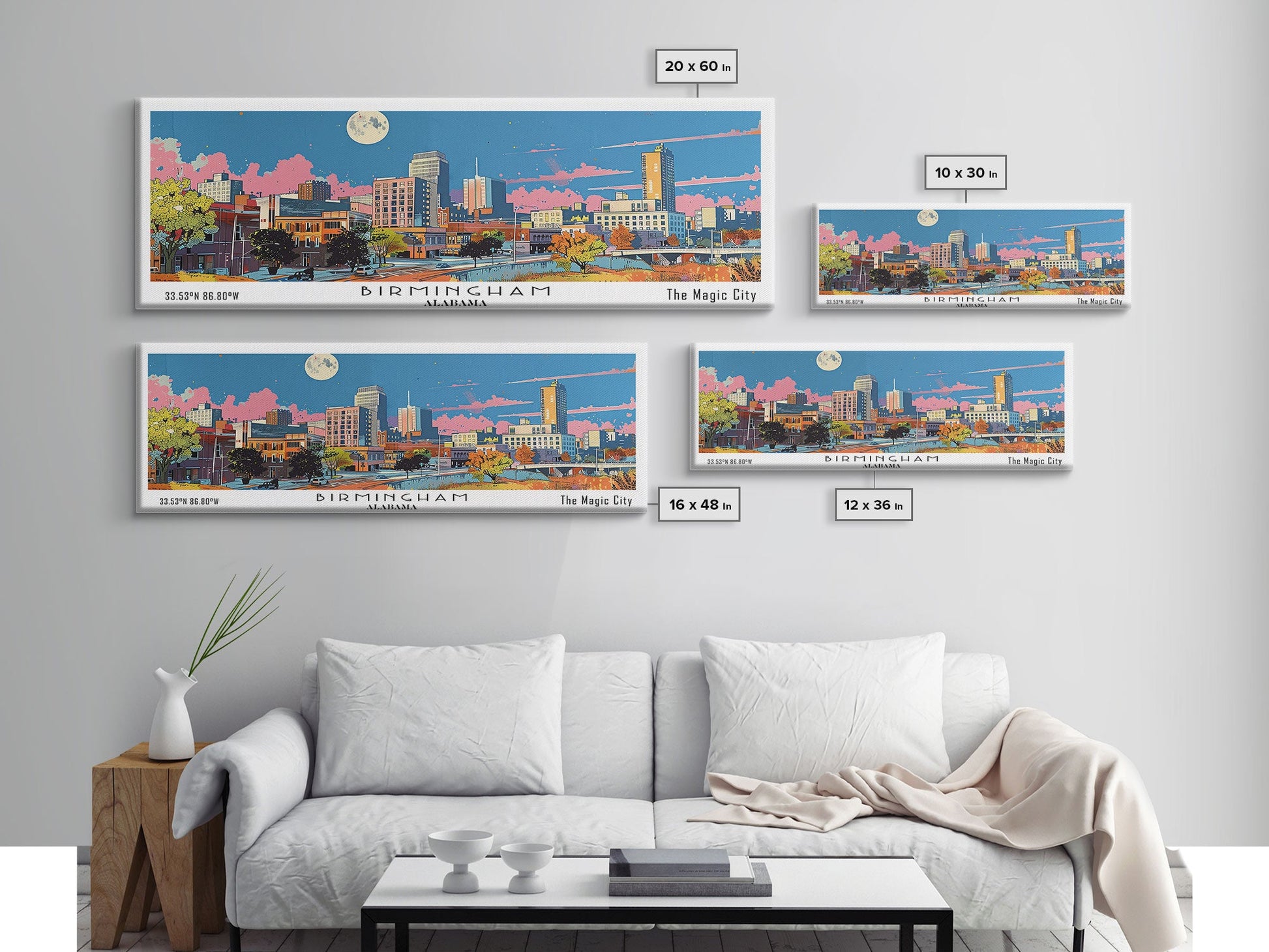 Birmingham Alabama Panoramic Painting, Mid Century Modern Framed Canvas Print, Retro Pop Art Travel Poster, Office Wall Art, City Print