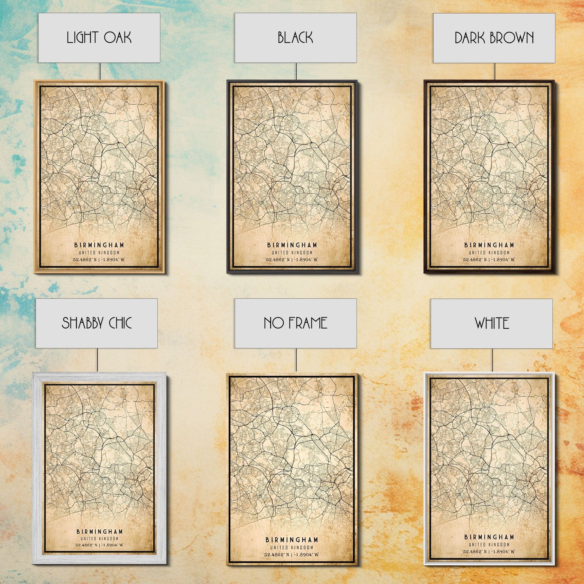 Birmingham UK map print poster or framed canvas, England map print poster canvas, UK city map print poster canvas, Vintage Travel Art