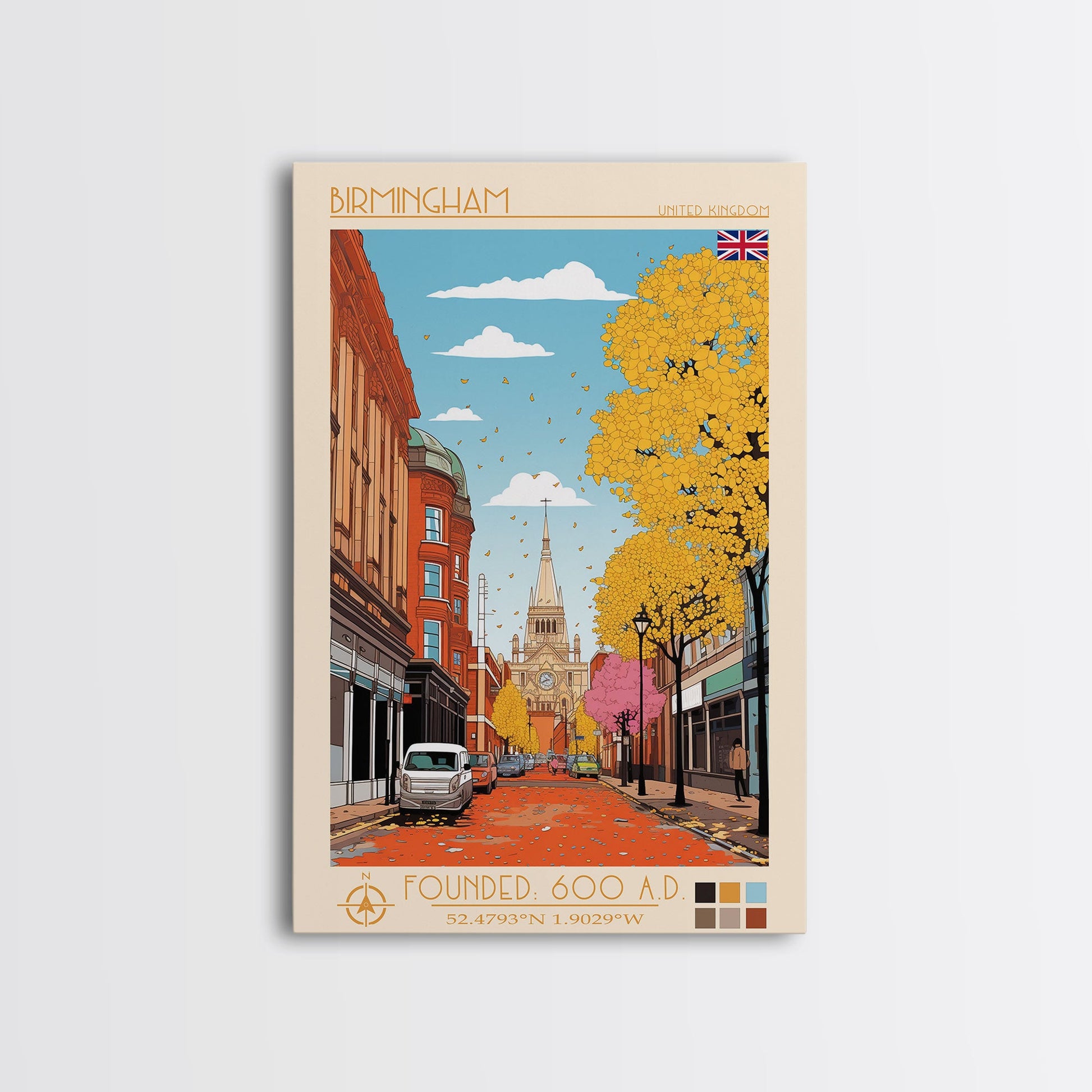 Birmingham UK Travel Poster Framed Canvas Print, Midcentury Modern Art, Pop Art Wall Decor, Home Decor, Living Room Decoration