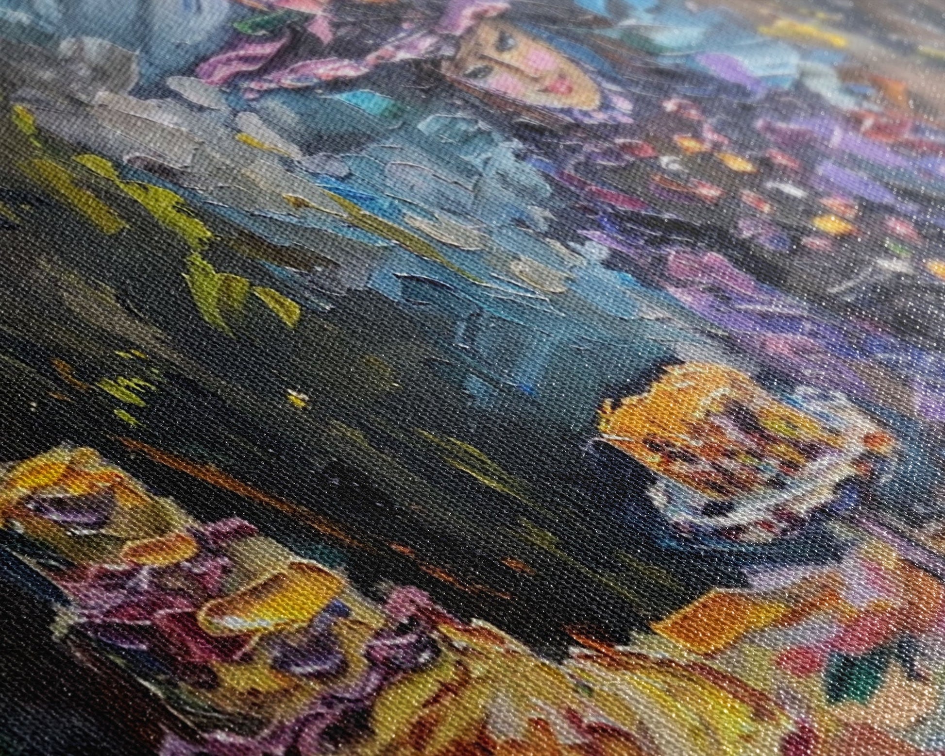 Most of our canvases are made in the USA, with the exception of canvases ordered with the light oak unstained frames, and any large canvases (24x48, 30x60, 16x48 and 20x60) ordered WITH a frame. These are temporarily made in and shipped from Europe, while we try to find a more consistent supplier in the USA.