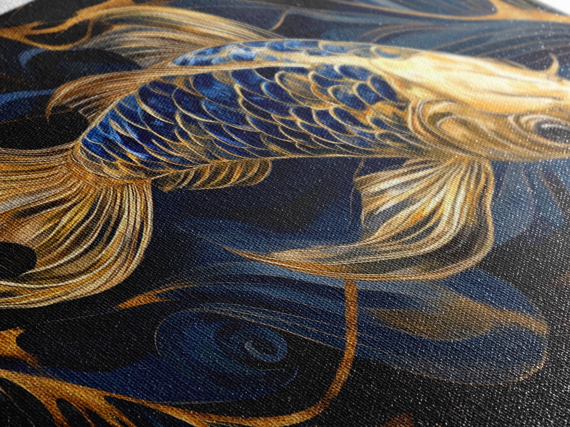 Black and Gold Koi Fish Framed Canvas Print, Wabi Sabi Style Home Decor, Koi Fish Painting Koi Fish Art, Modern Living Room Decor