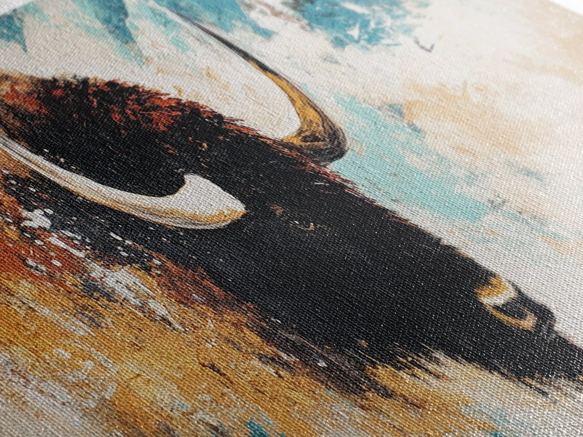 Black and White Buffalo, western wall art, rustic decor, extra wide art, moody art, minimalist painting, framed canvas print, farmhouse art
