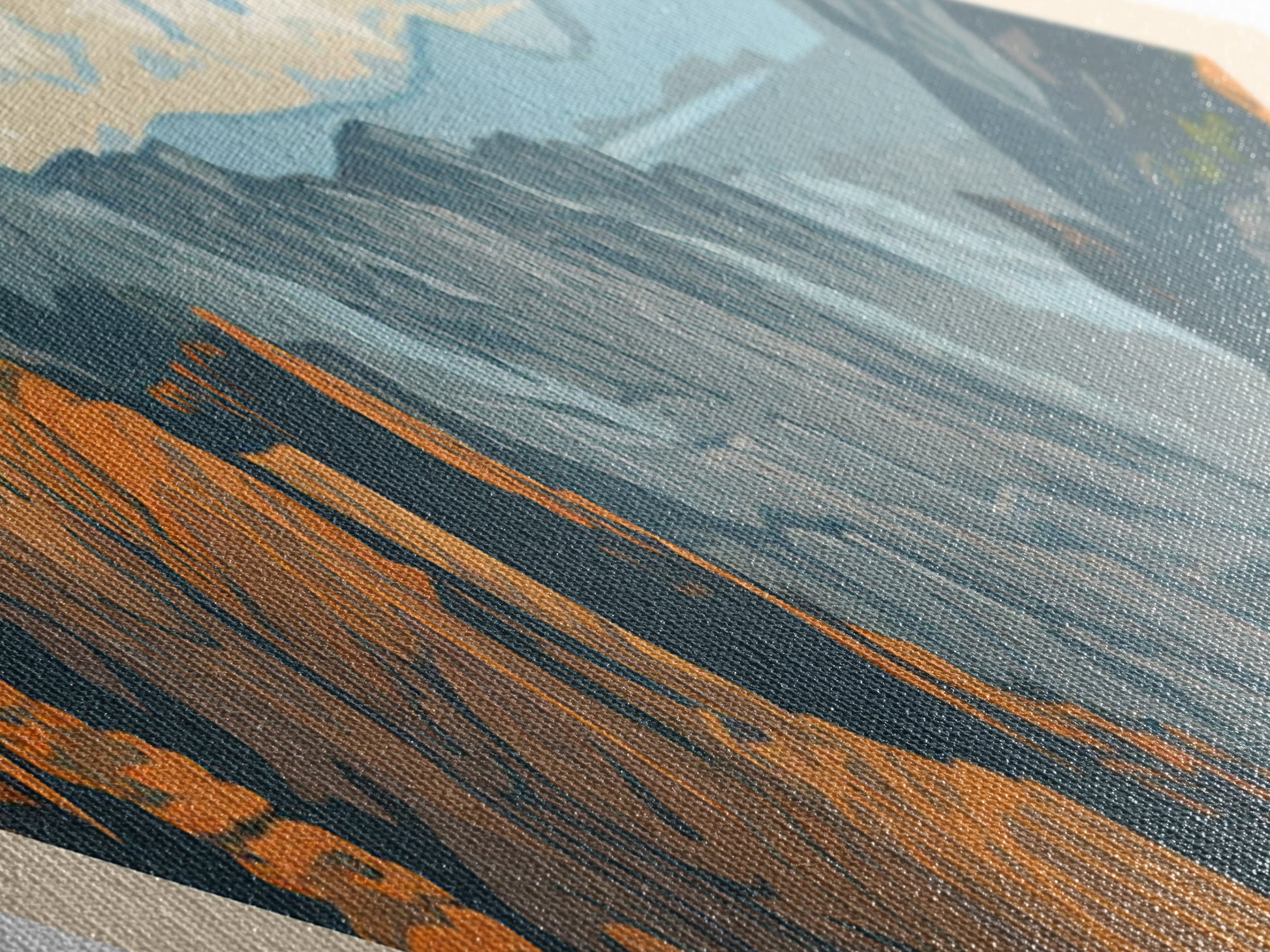 Most of our canvases are made in the USA, with the exception of canvases ordered with the light oak unstained frames, and any large canvases (24x48, 30x60, 16x48 and 20x60) ordered WITH a frame. These are temporarily made in and shipped from Europe, while we try to find a more consistent supplier in the USA.