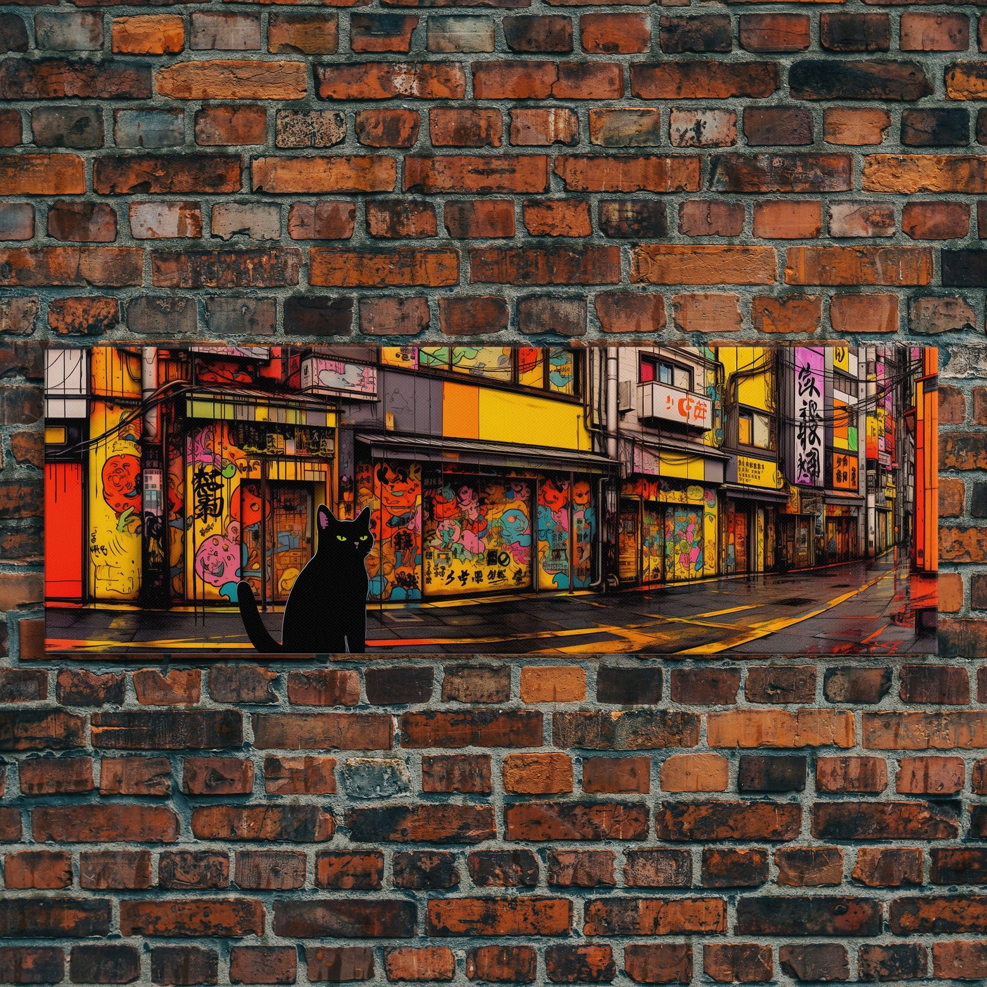 Black Cat Art Print, Framed Wall Art, Punk Cart Art, This Cat Is From The Streets, Colorful Cat Lover Art