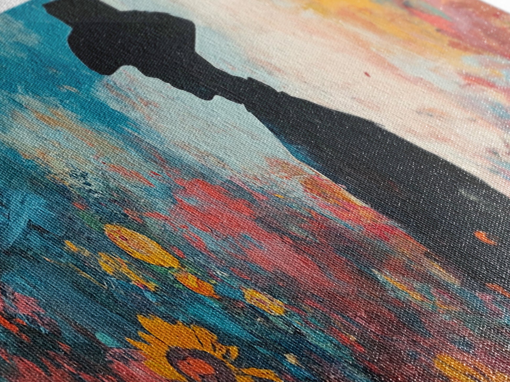 Black cowgirl painting, western decor, wildflower painting, boho art, extra wide art, framed canvas print, rustic decor, poppy wall art