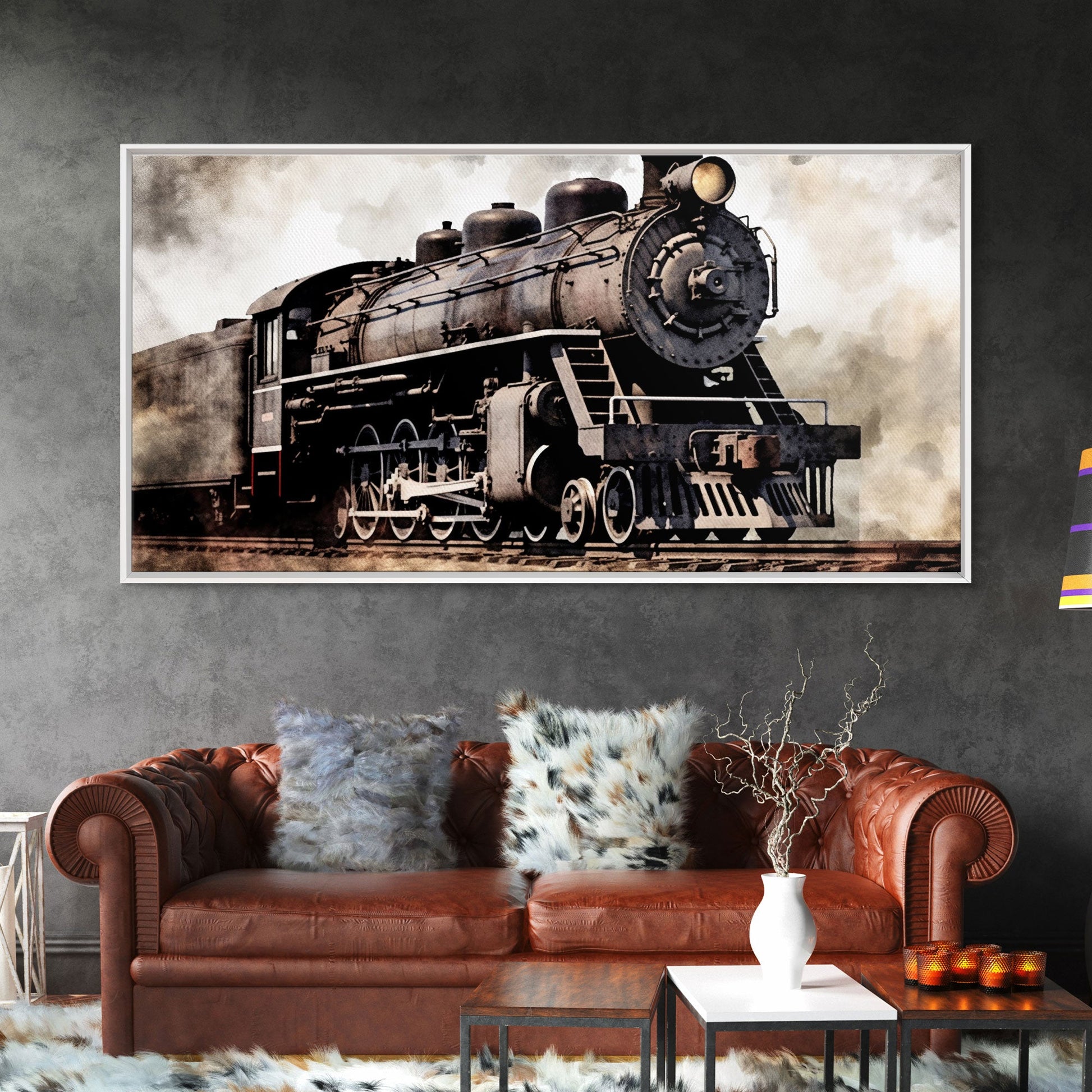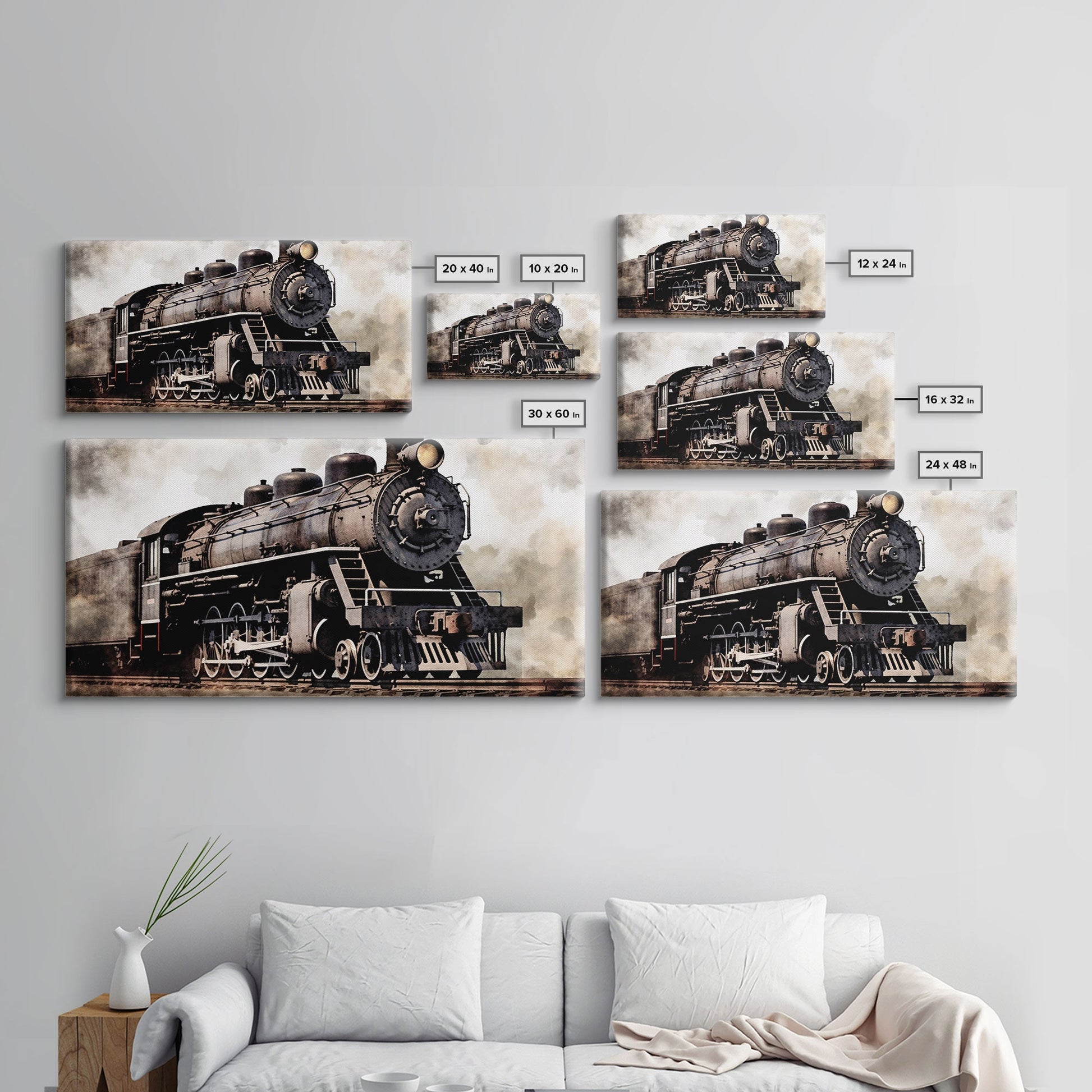 Black Steam Train Wall Art, Locomotive Wall Decor, Retro Train Wall Art, Panoramic Wall Decor, Canvas Print, Wall Art, Framed Canvas Art