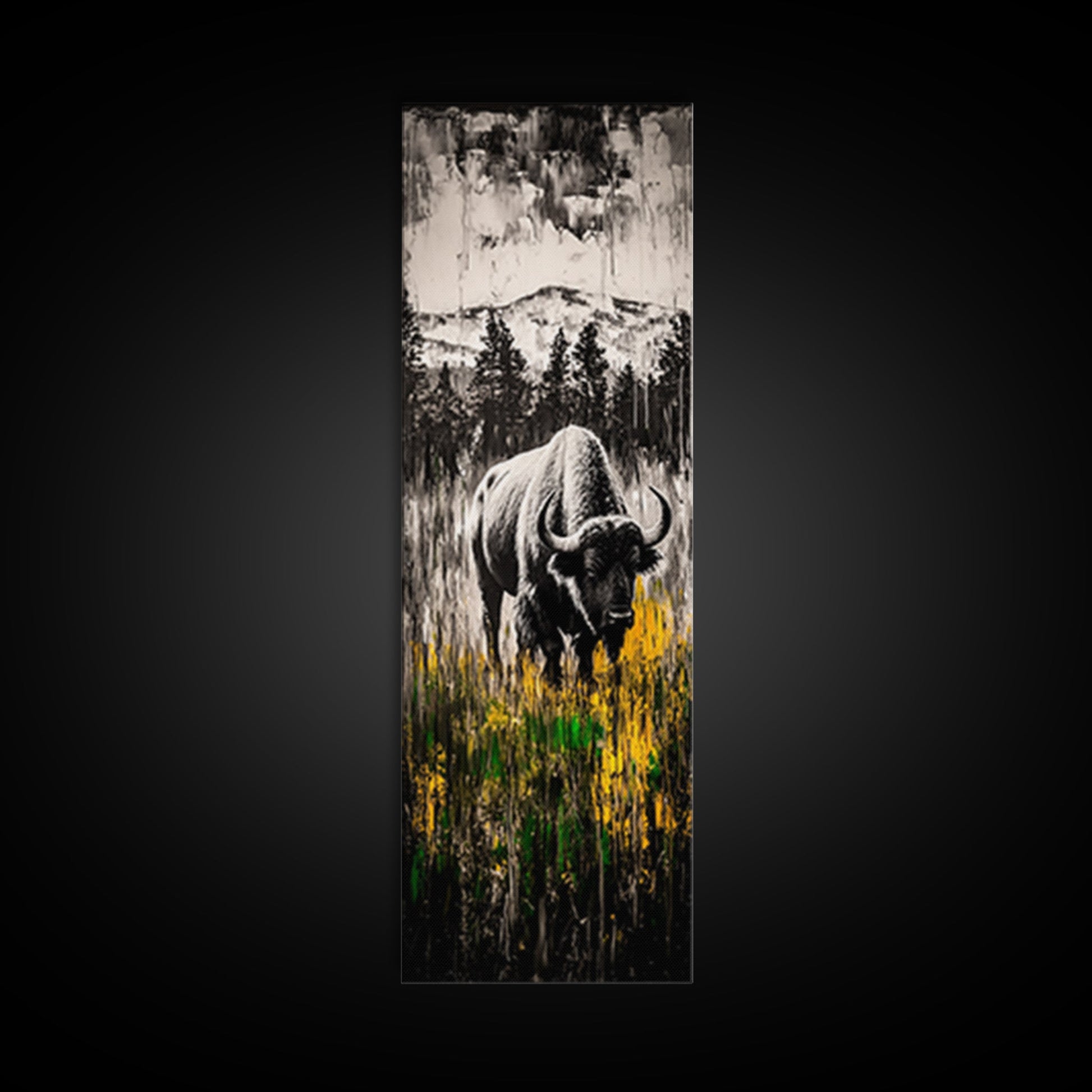 Black White Bison Canvas Print Rustic Wall Art Western Art Farmhouse Art Tall Narrow Art Above Sofa Art Gift Idea Him