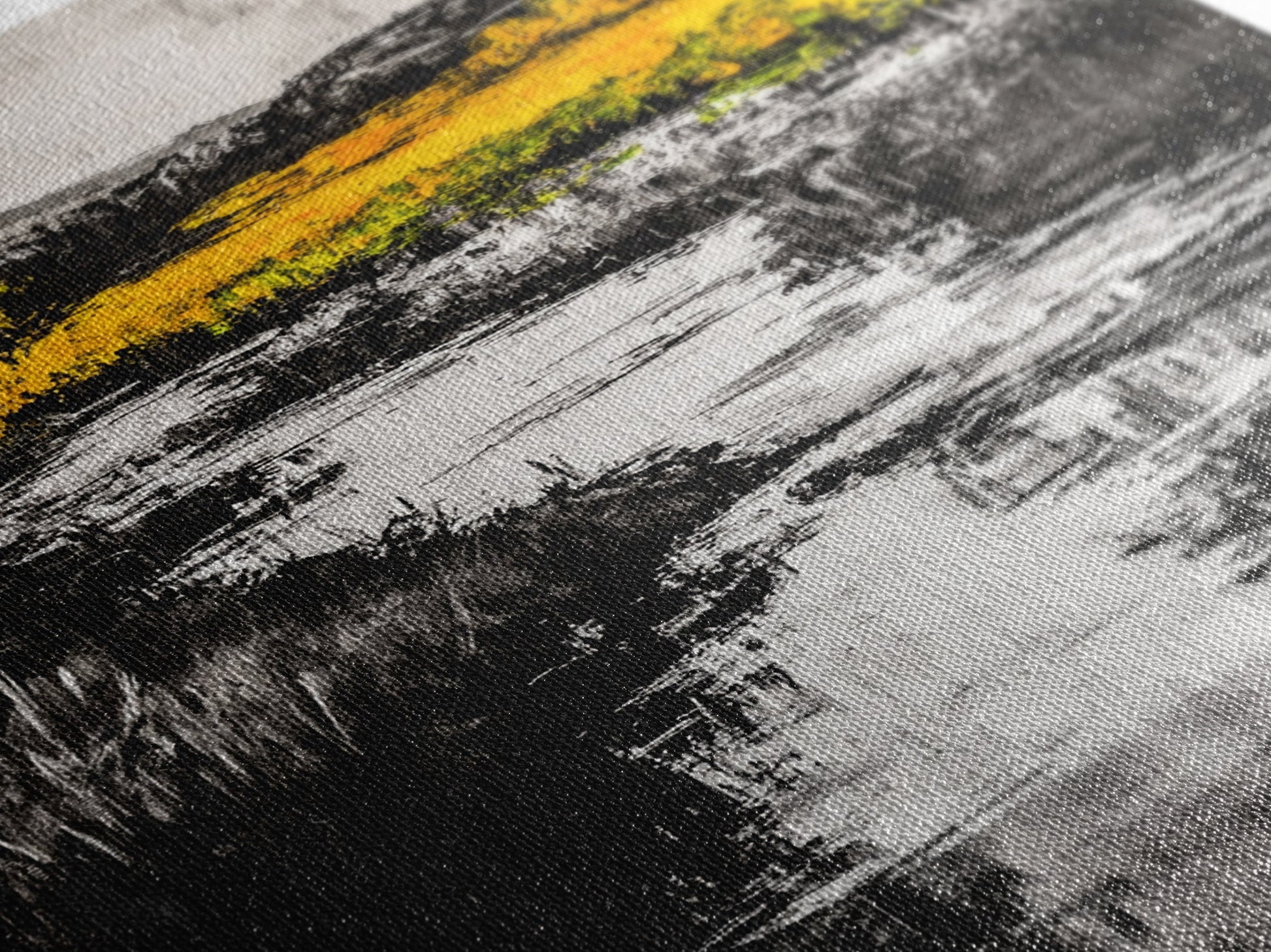 Black White Landscape, Yellow Trees, River Stream Art, Rustic Farmhouse Decor, Modern Nature Wall Art, Bedroom Wall Decor, Canvas Print