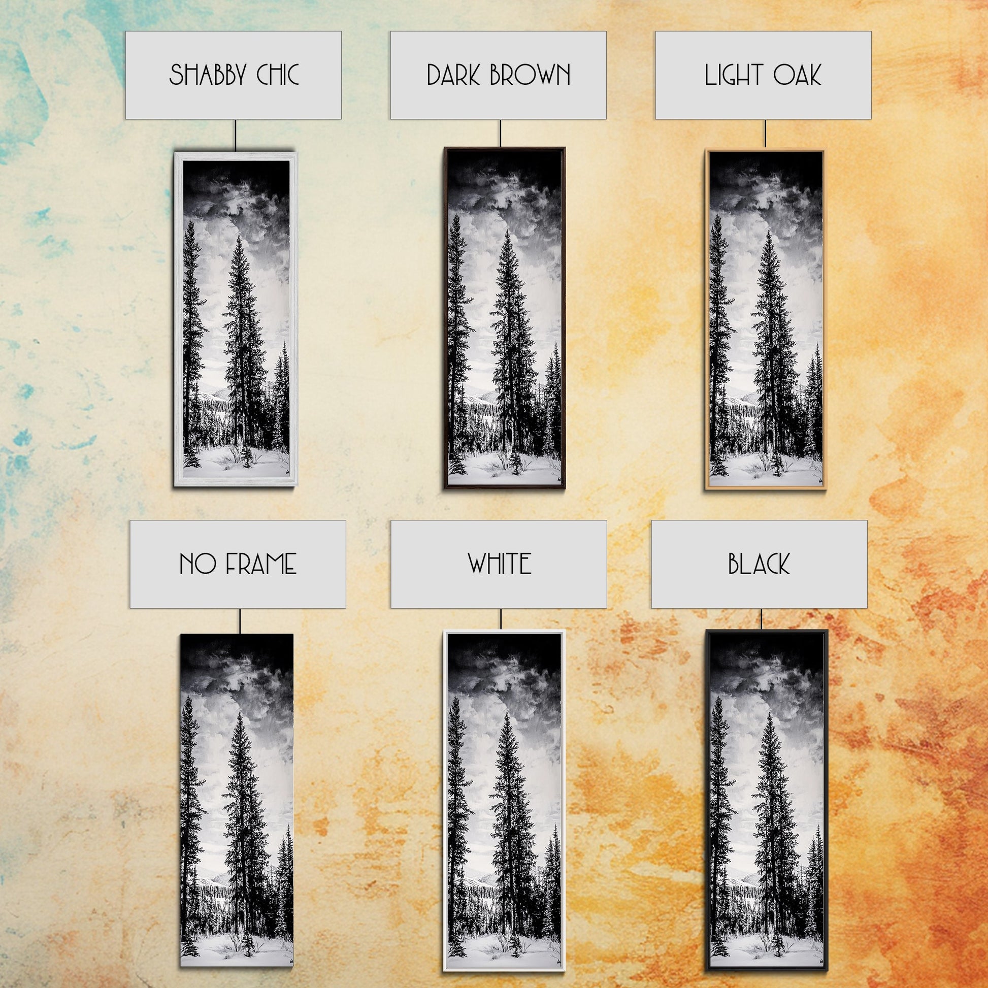 *Optional frames add a total of 1.5 inches to each dimension, for example a 10x20 canvas with a frame will be 11.5 by 21.5 inches total. All framed canvas are 1.5" total depth.