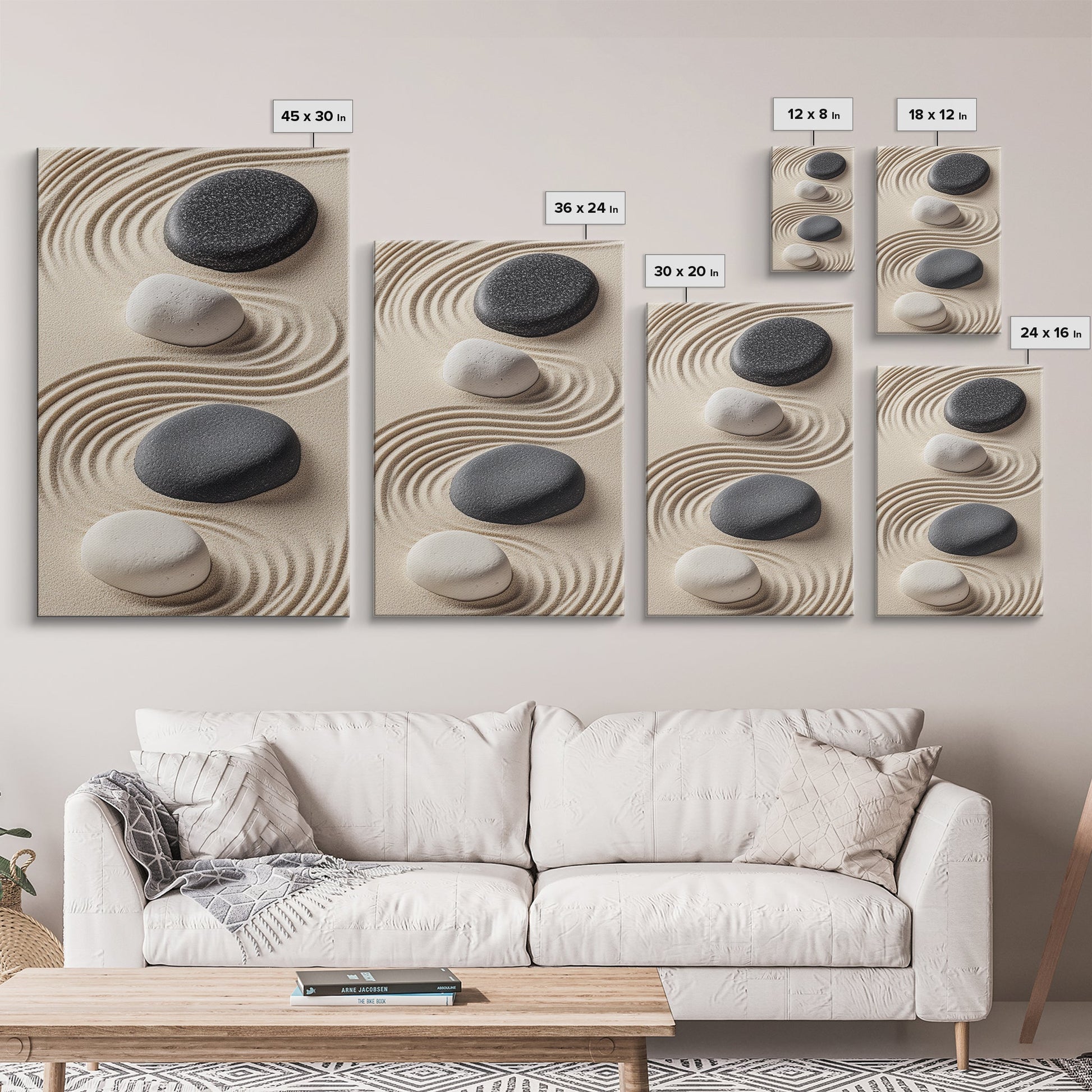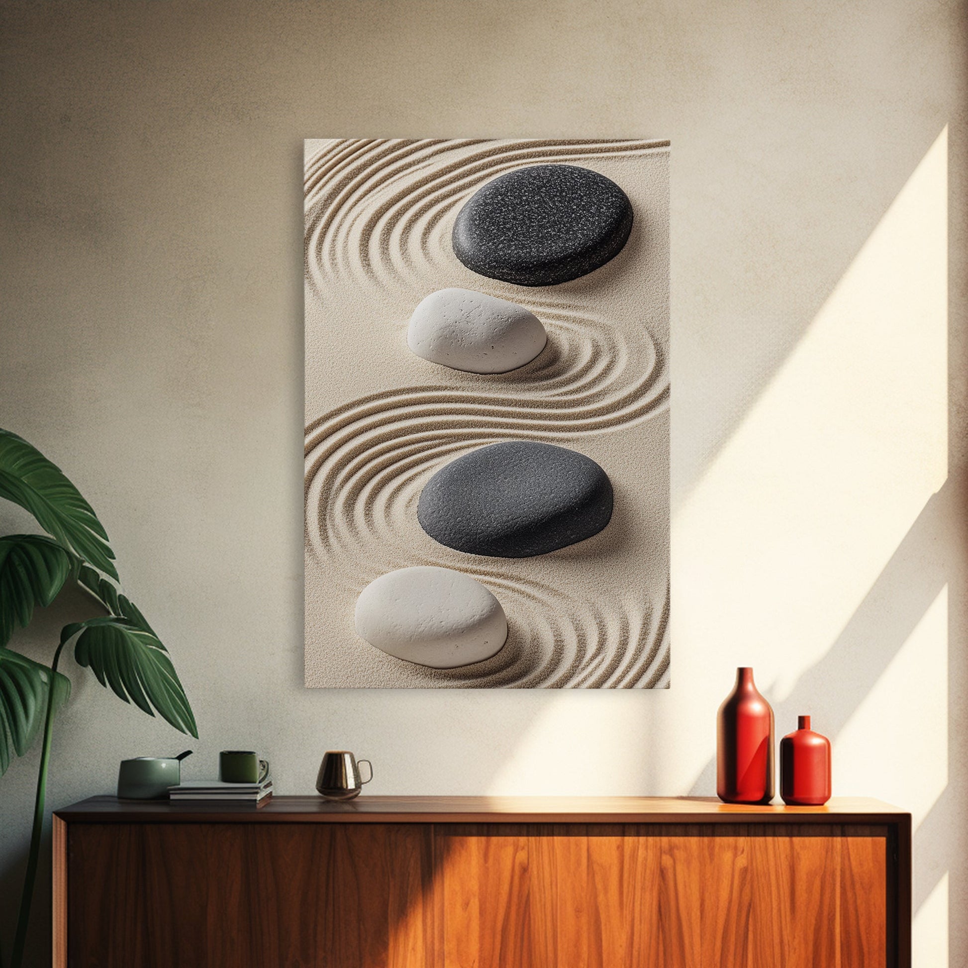 Black White Zen Stones Canvas Print Minimalist Zen Wall Art Wabi Sabi Artwork Rustic Zen Decor Living Room Art Bedroom Artwork