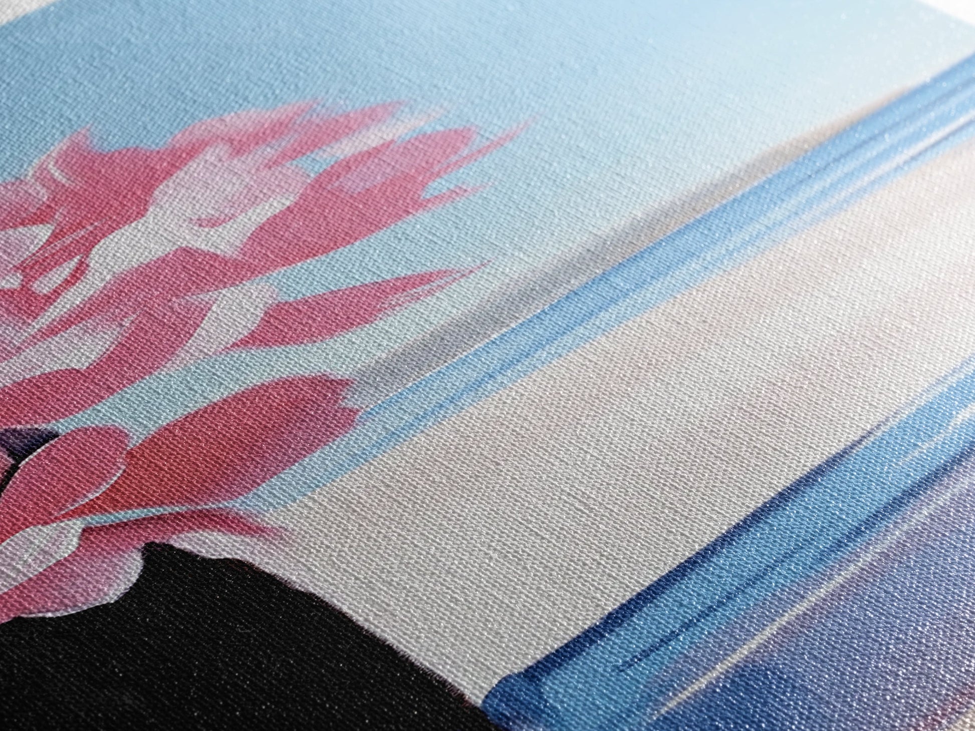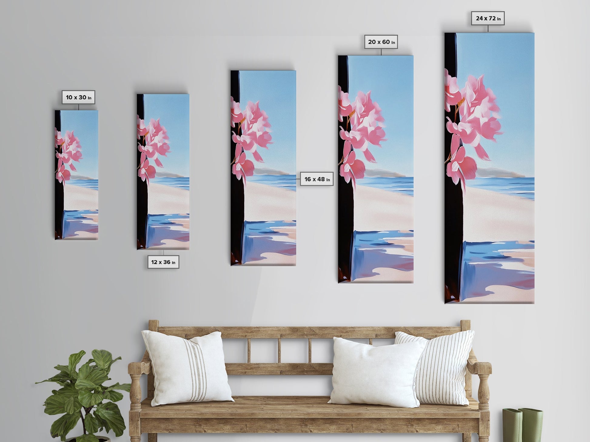 Blossom Beach, Floral Coastal Art, Pink and Blue Decor, Modern Seascape, Romantic Spring Aesthetic, Dreamy Nature Scene, Canvas Print