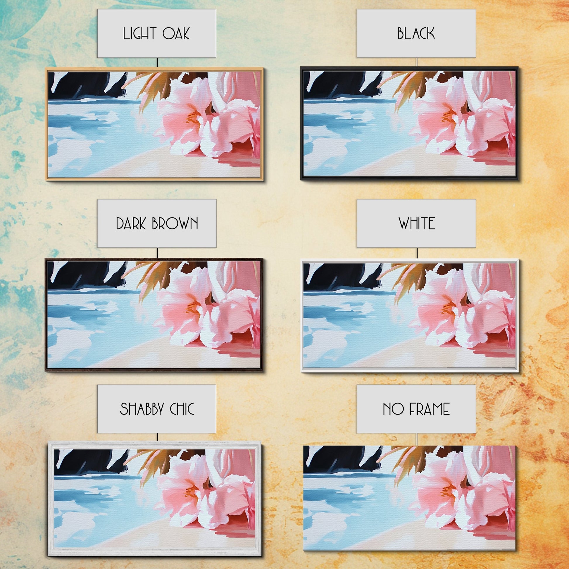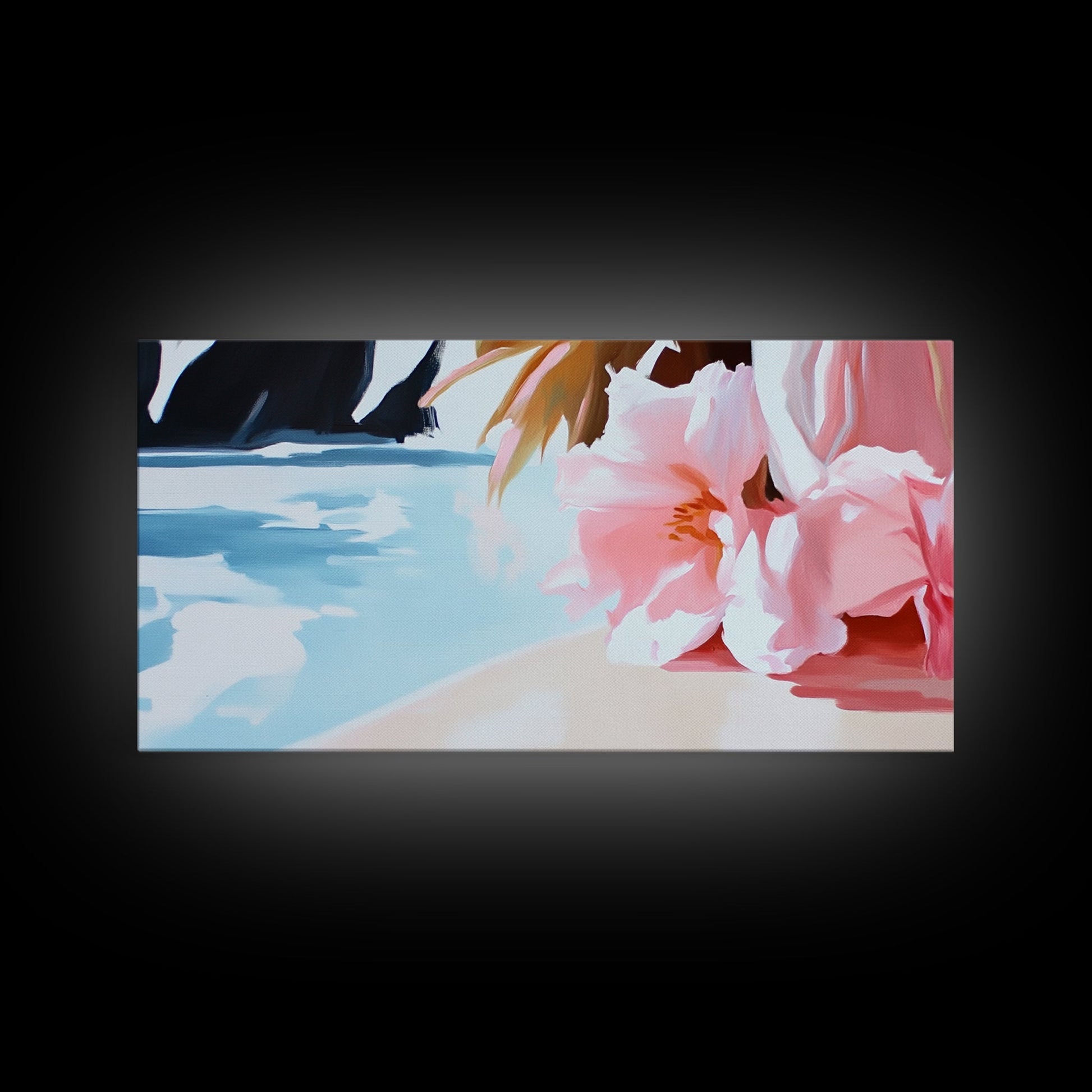 Blossom Beach, Floral Seascape, Coastal Art, Pastel Wall Decor, Living Room Art, Canvas Print, Minimalist Nature Painting, Tranquil Artwork