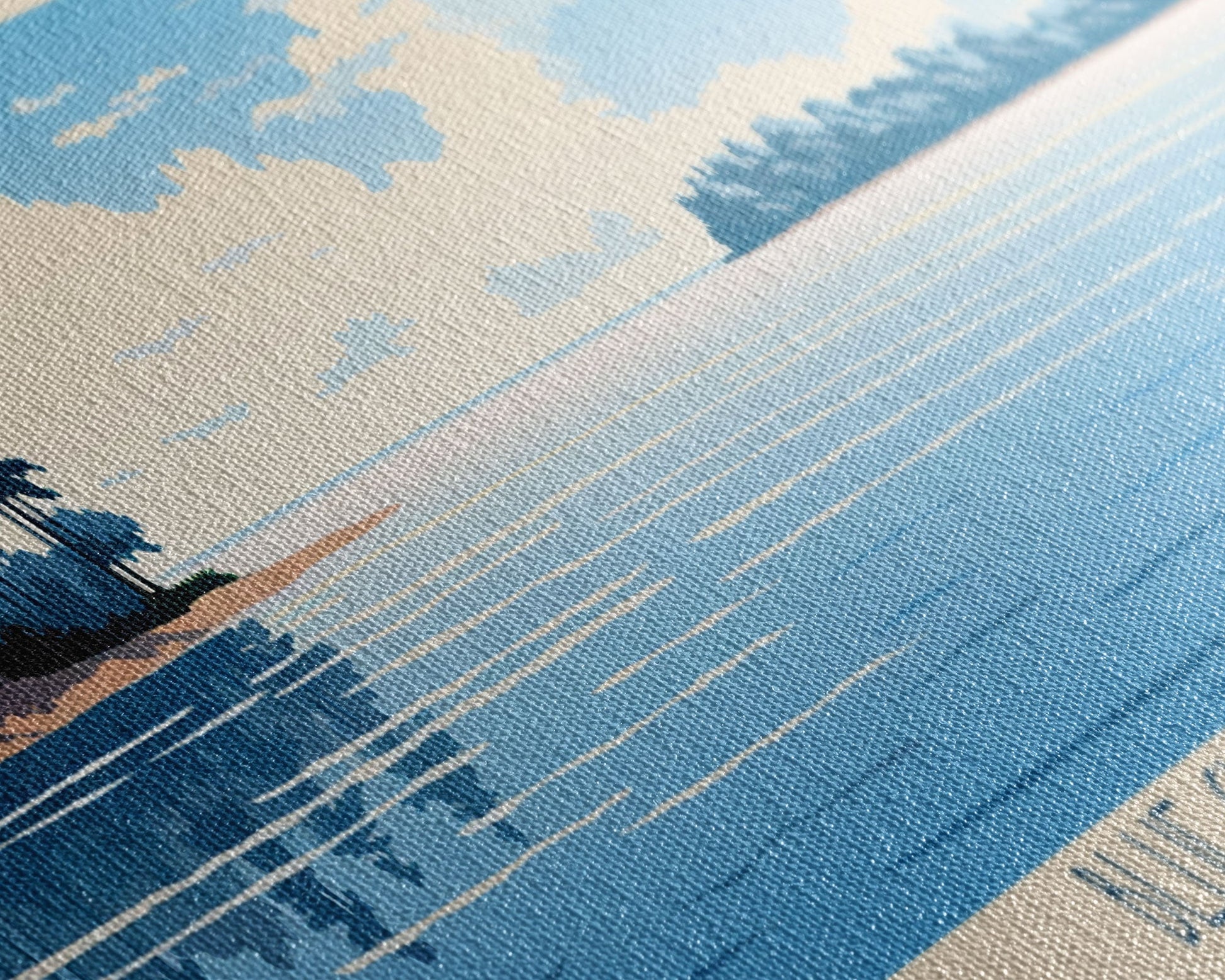 Most of our canvases are made in the USA, with the exception of canvases ordered with the light oak unstained frames, and any large canvases (24x48, 30x60, 16x48 and 20x60) ordered WITH a frame. These are temporarily made in and shipped from Europe, while we try to find a more consistent supplier in the USA.