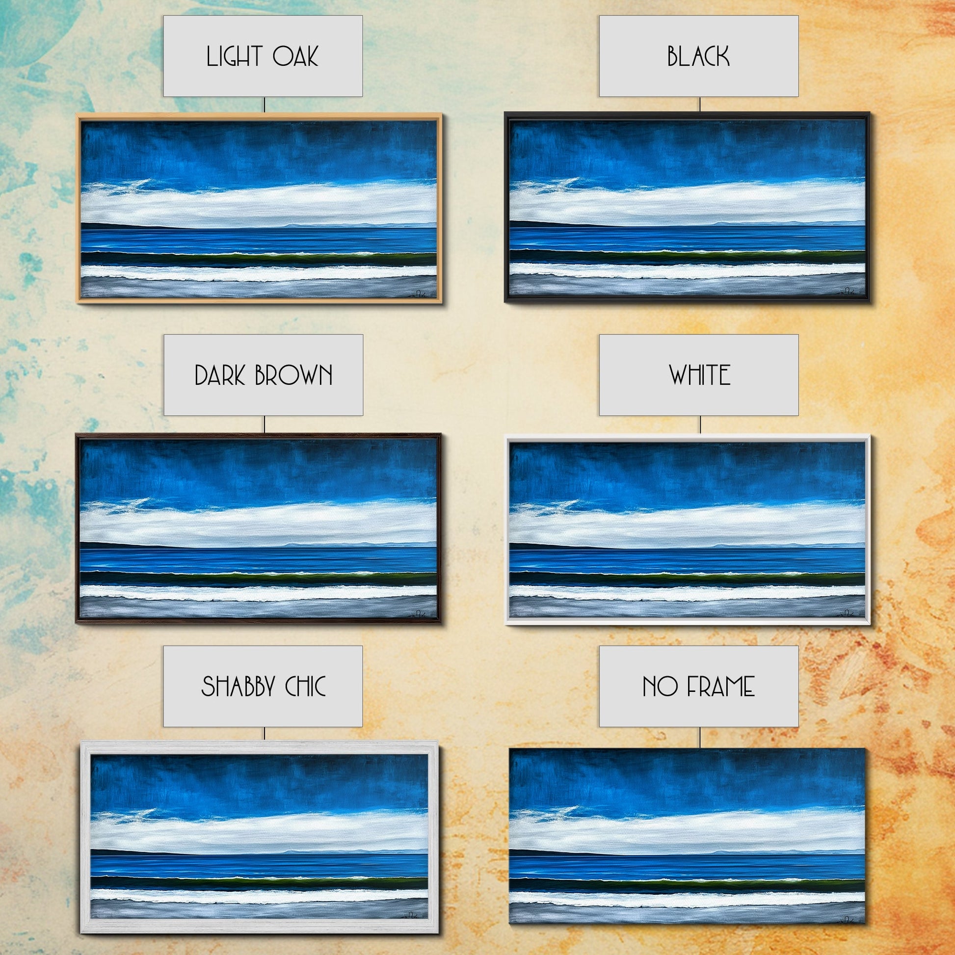 Blue Horizon, Minimalist Seascape Art, Framed Canvas Print, Ocean Wall Decor, Contemporary Coastal Painting, Modern Living Room Art