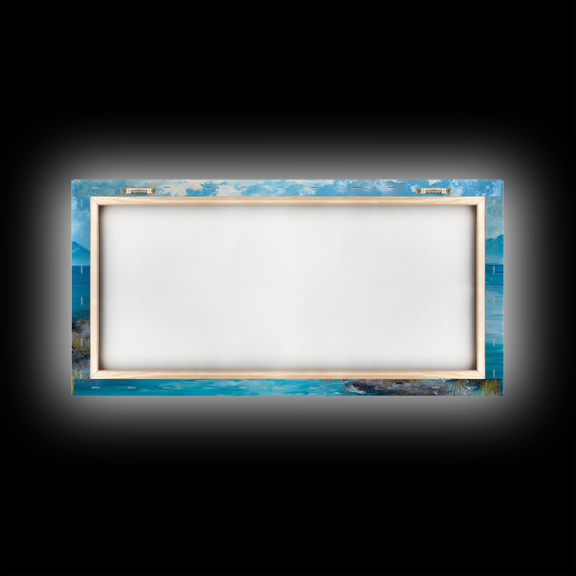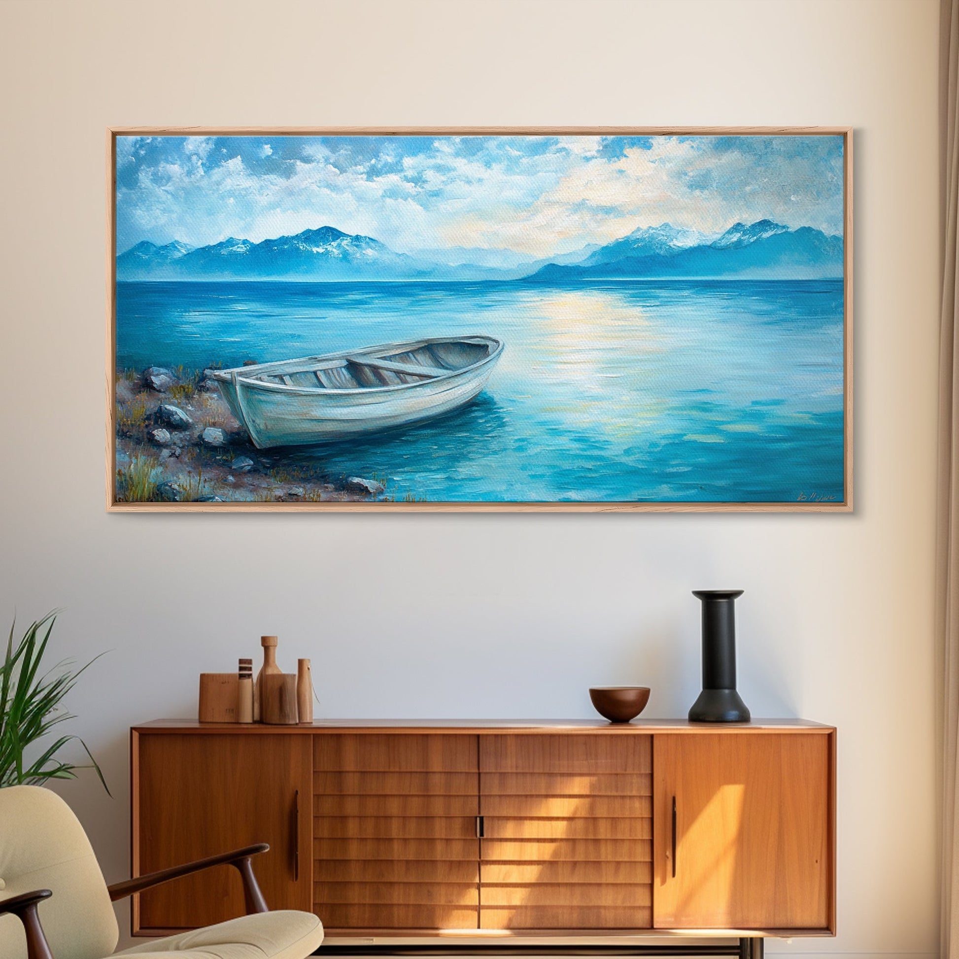 Boat on Tranquil Lake Canvas Print Coastal Landscape Art Nautical Wall Art Rustic Decor Above Sofa Artwork Bedroom Art Original Painting