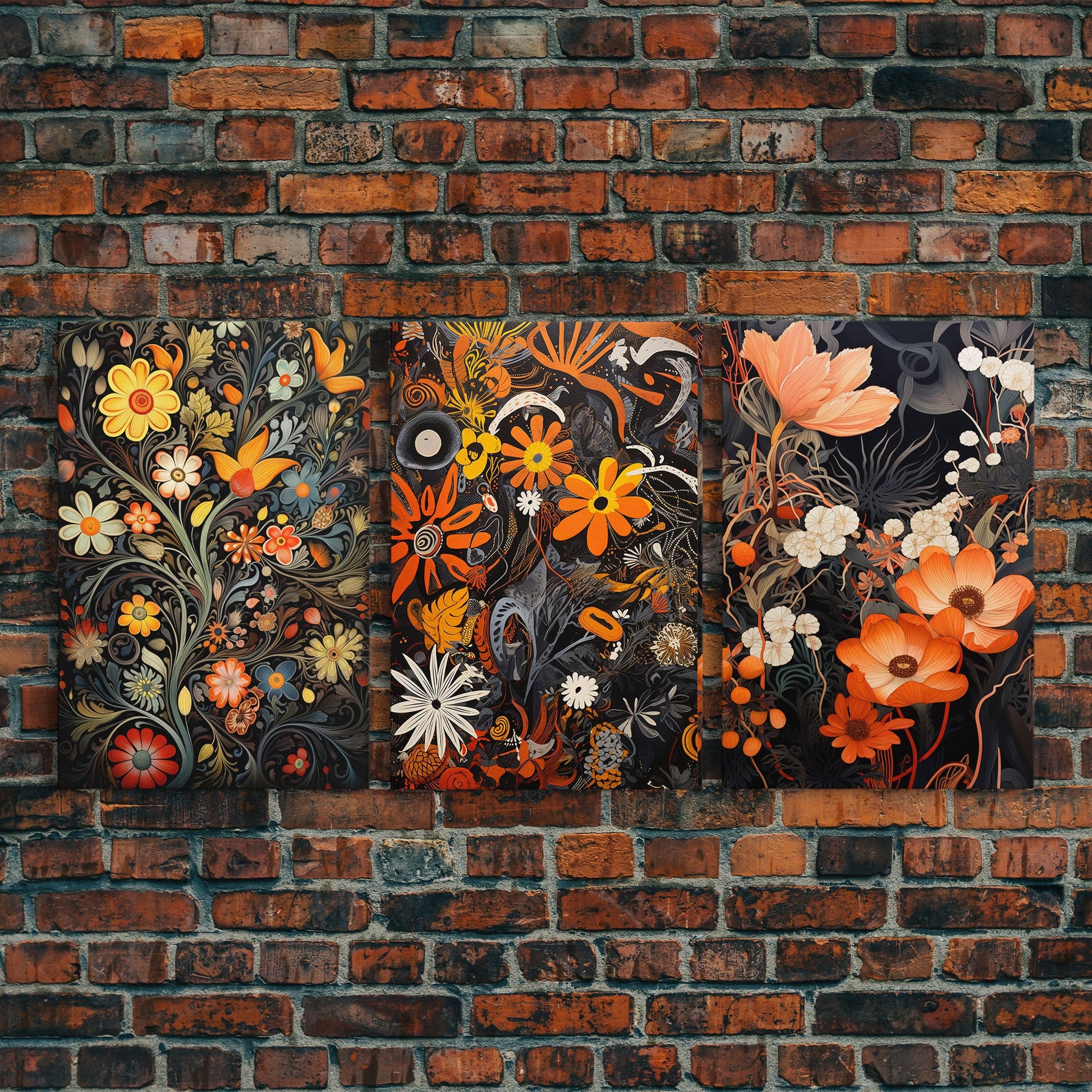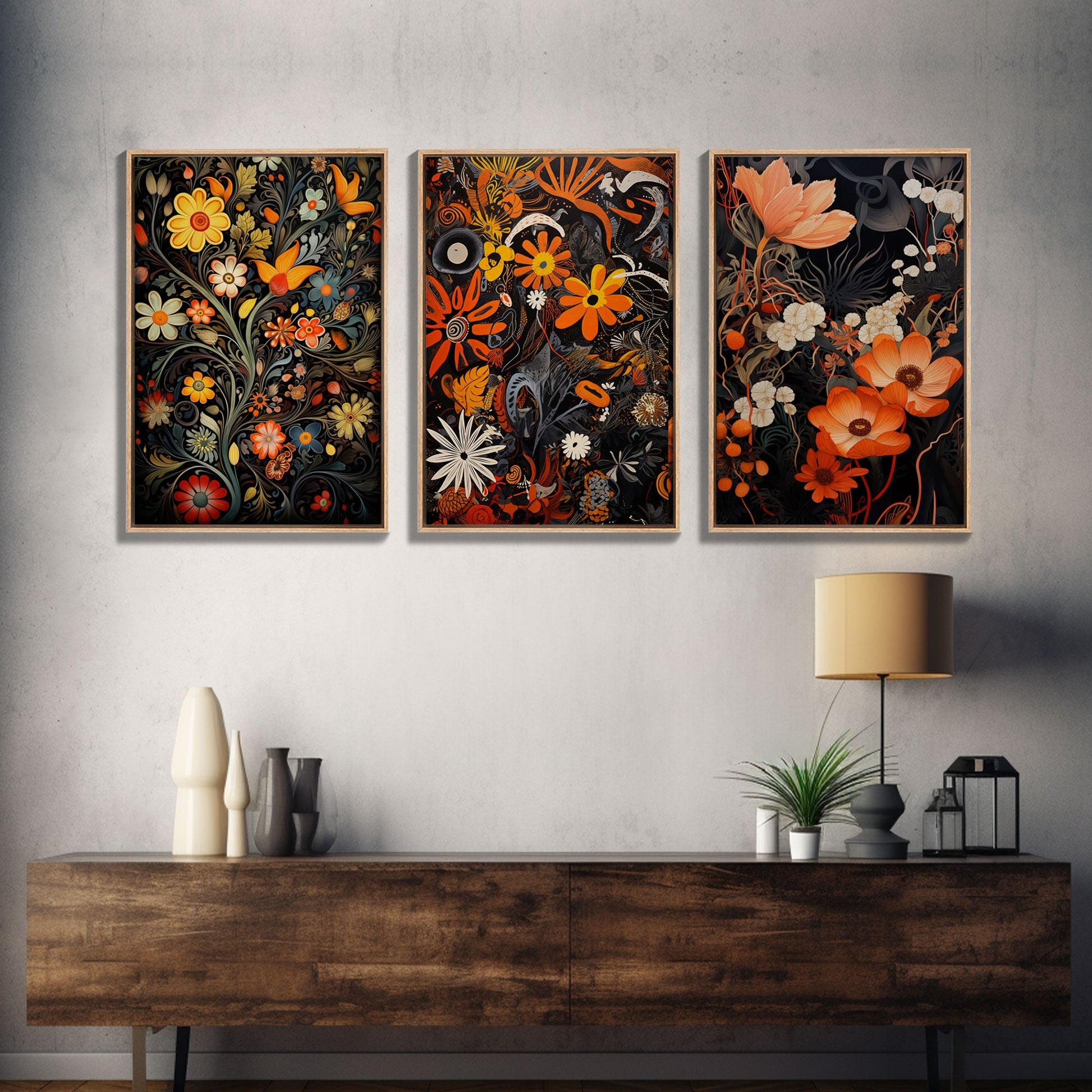 Boho Style Wall Art, Framed Canvas Print 3 Piece Set, Boho Chic, Gifts For Girlfriend, Boho Home Decor, Botanical Floral Art, Botanical Art