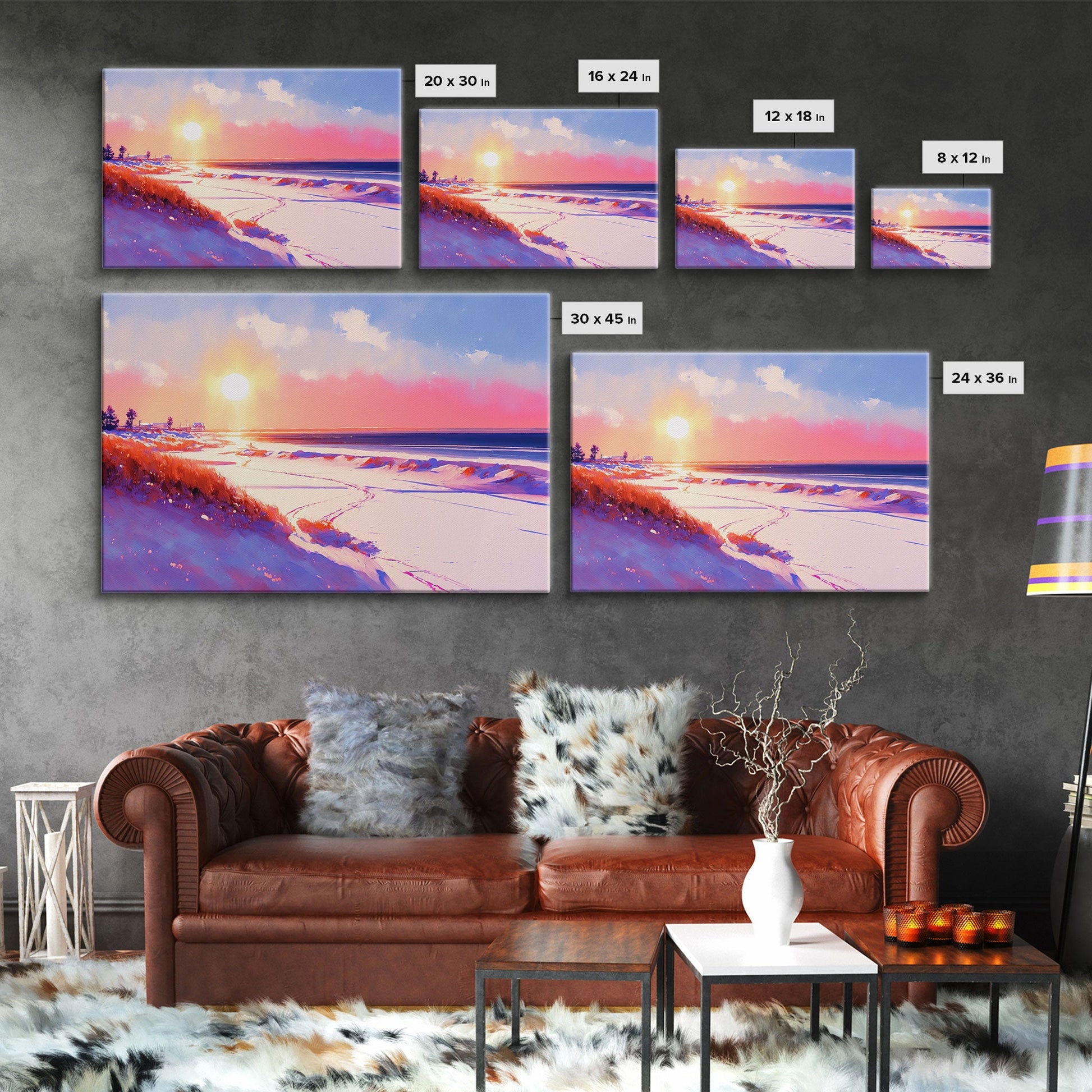 Boho Style Whimsical Beach Art, Framed Canvas Print, Minimalist Modern Farmhouse Decor, Maine Beach Art
