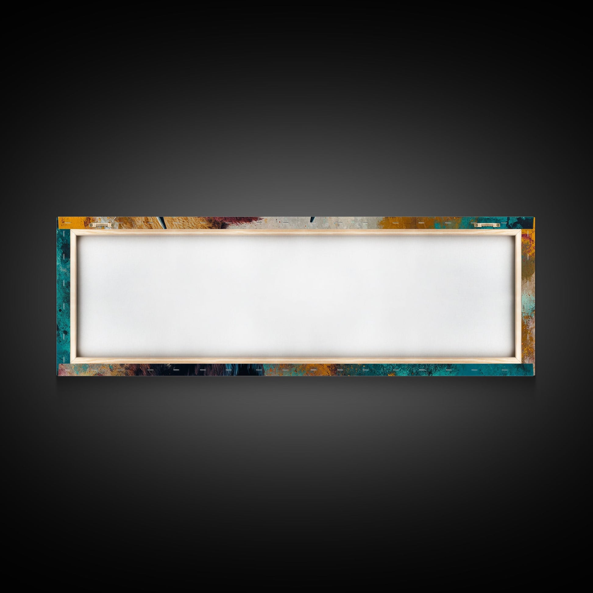 Bold bison painting, teal and orange art, rustic wall art, farmhouse decor, boho art, extra wide western painting, canvas print