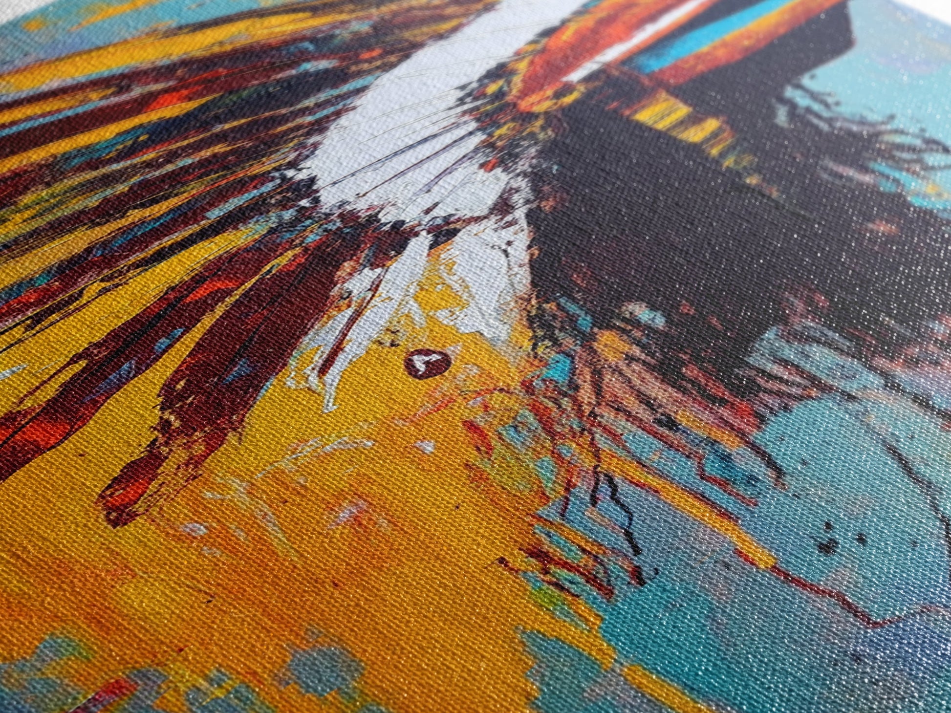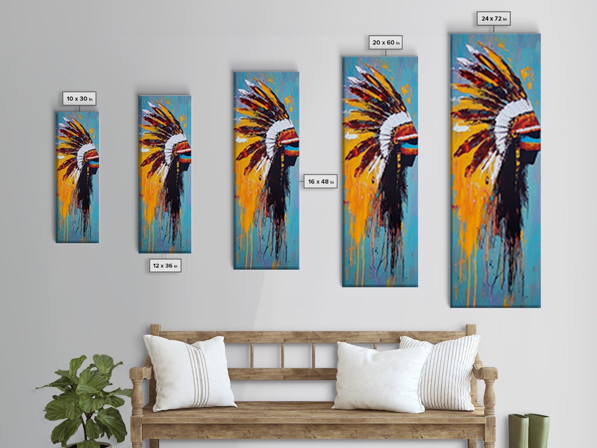 Bold Feather Headdress Canvas Print Afrocentric Wall Art Southwest Wall Art Colorful Portrait Painting Vertical Wall Art