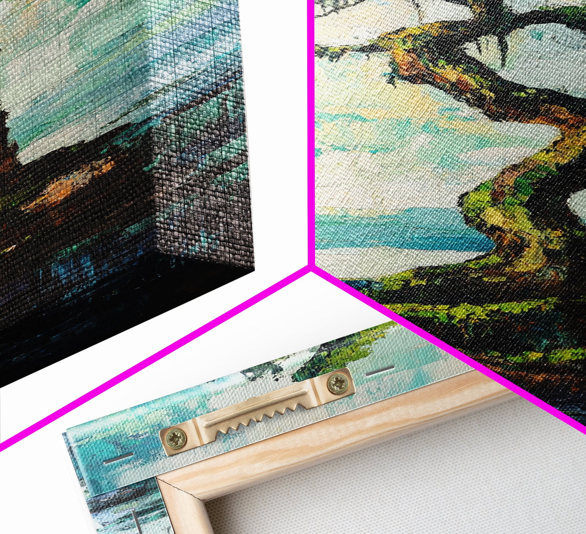 bonsai tree painting, zen wall art, coastal landscape art, blue and green wall art, wabi sabi art, Framed Canvas Print, botanical prints