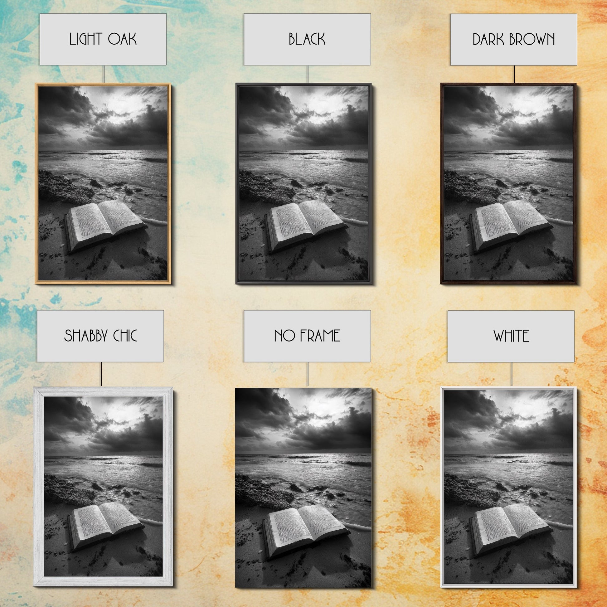 Book Beach Twilight, Reading By Ocean, Literary Seascape, Canvas Print, Study Wall Art, Moody Literary Art, Minimalist Coastal Decor