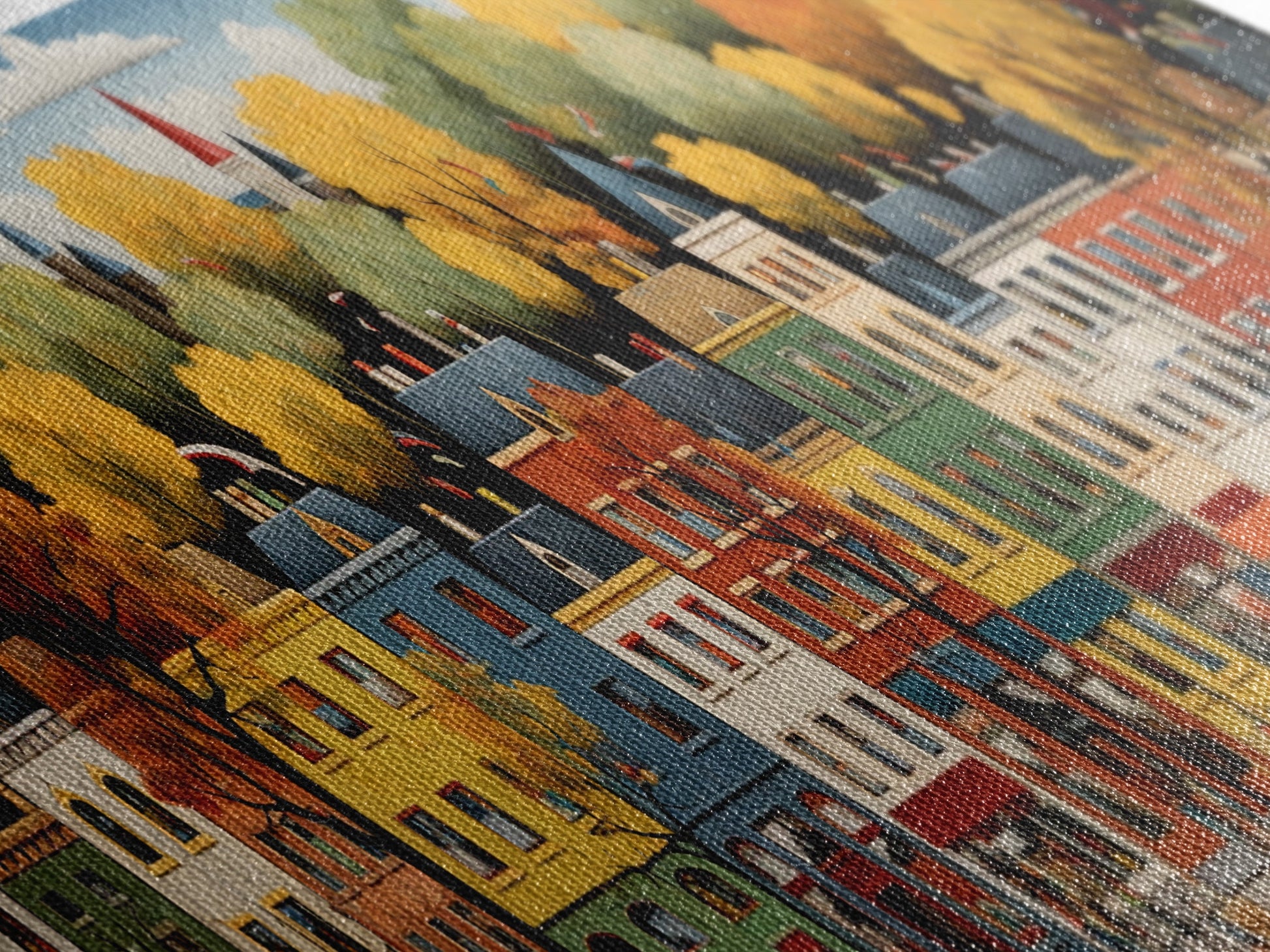 Most of our canvases are made in the USA, with the exception of canvases ordered with the light oak unstained frames, and any large canvases (24x48, 30x60, 16x48 and 20x60) ordered WITH a frame. These are temporarily made in and shipped from Europe, while we try to find a more consistent supplier in the USA.