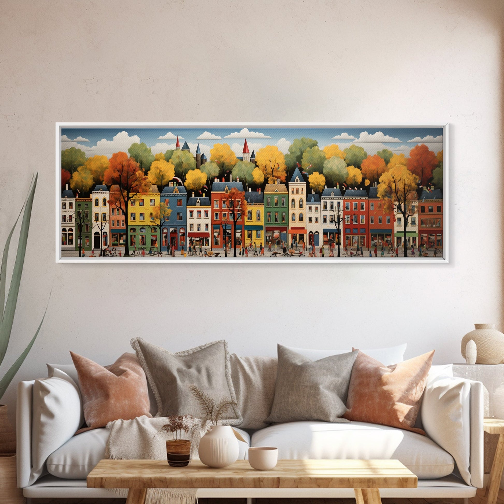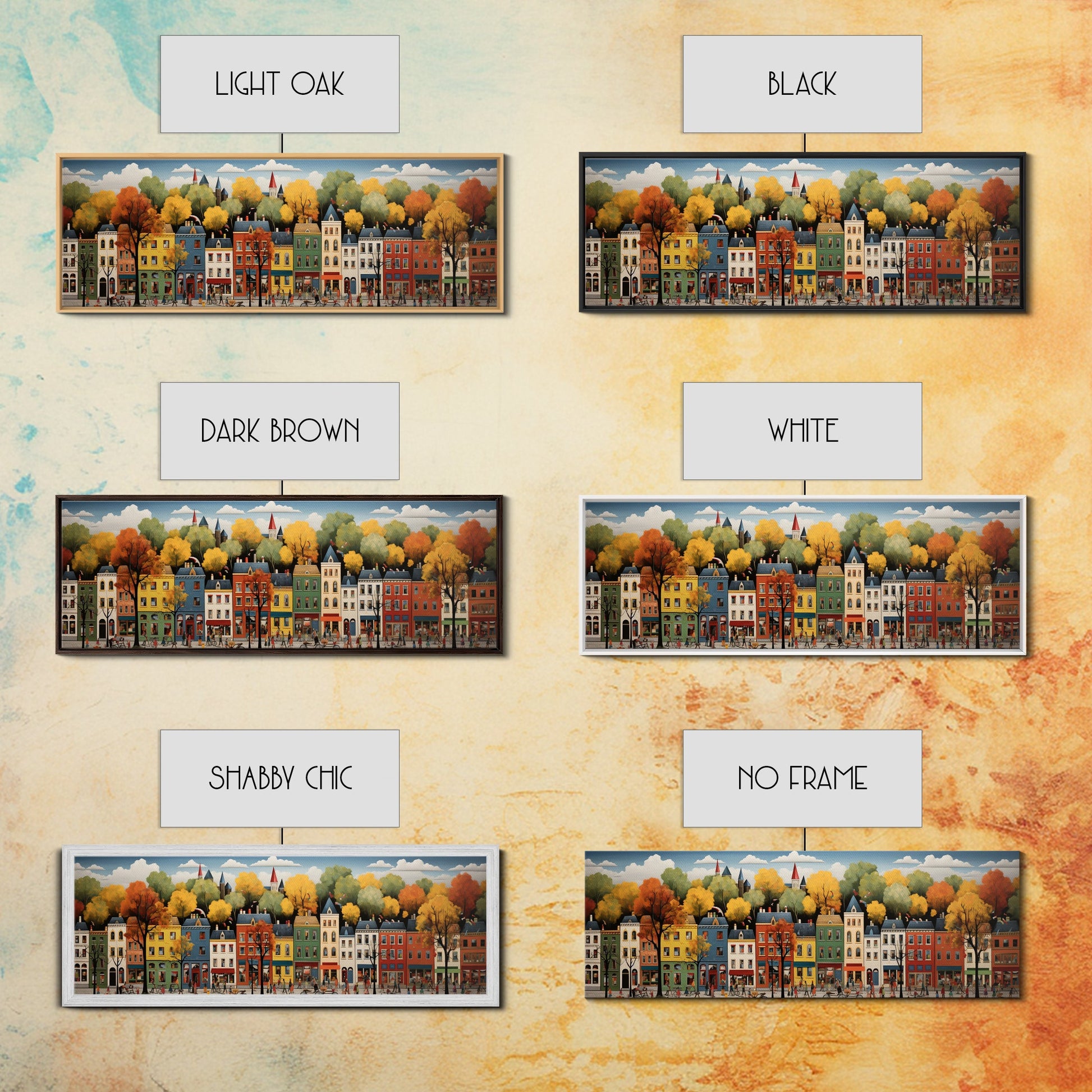 Boston Row Houses - Framed Canvas Print - Colorful Wall Art - Panoramic Print - Boston In The 1800s
