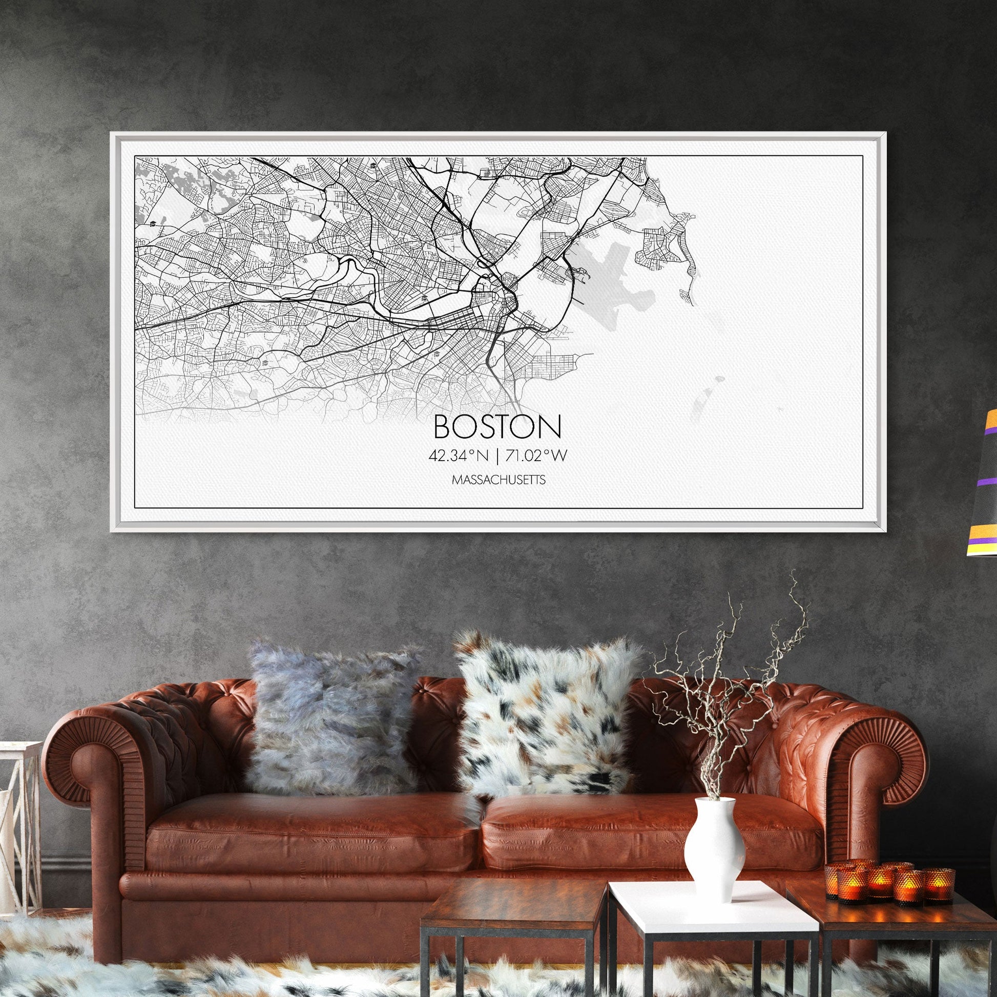 Boston Street Map, Massachusetts Map, Map Print, Modern Art, Wall Art, Canvas Art, Newlywed Gift, Gift For Parents, Farmhouse Wall Décor