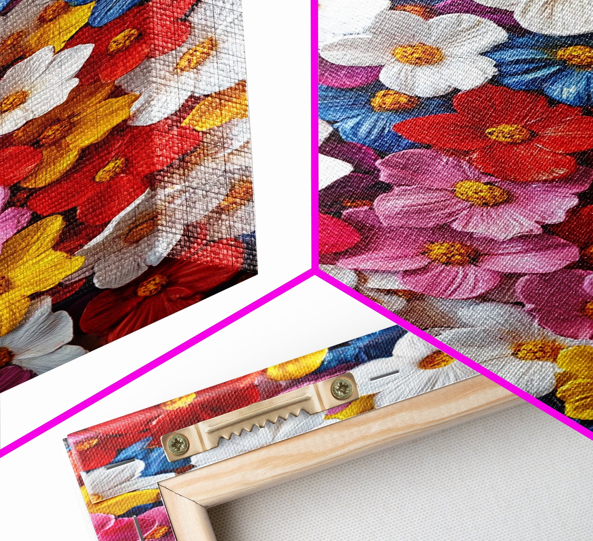 Botanical Prints Wall Art, Framed Canvas Print, 3D Effect Flower Art, Modern Art, Cute Room Decor, Aesthetic Decor, Trendy Wall Art