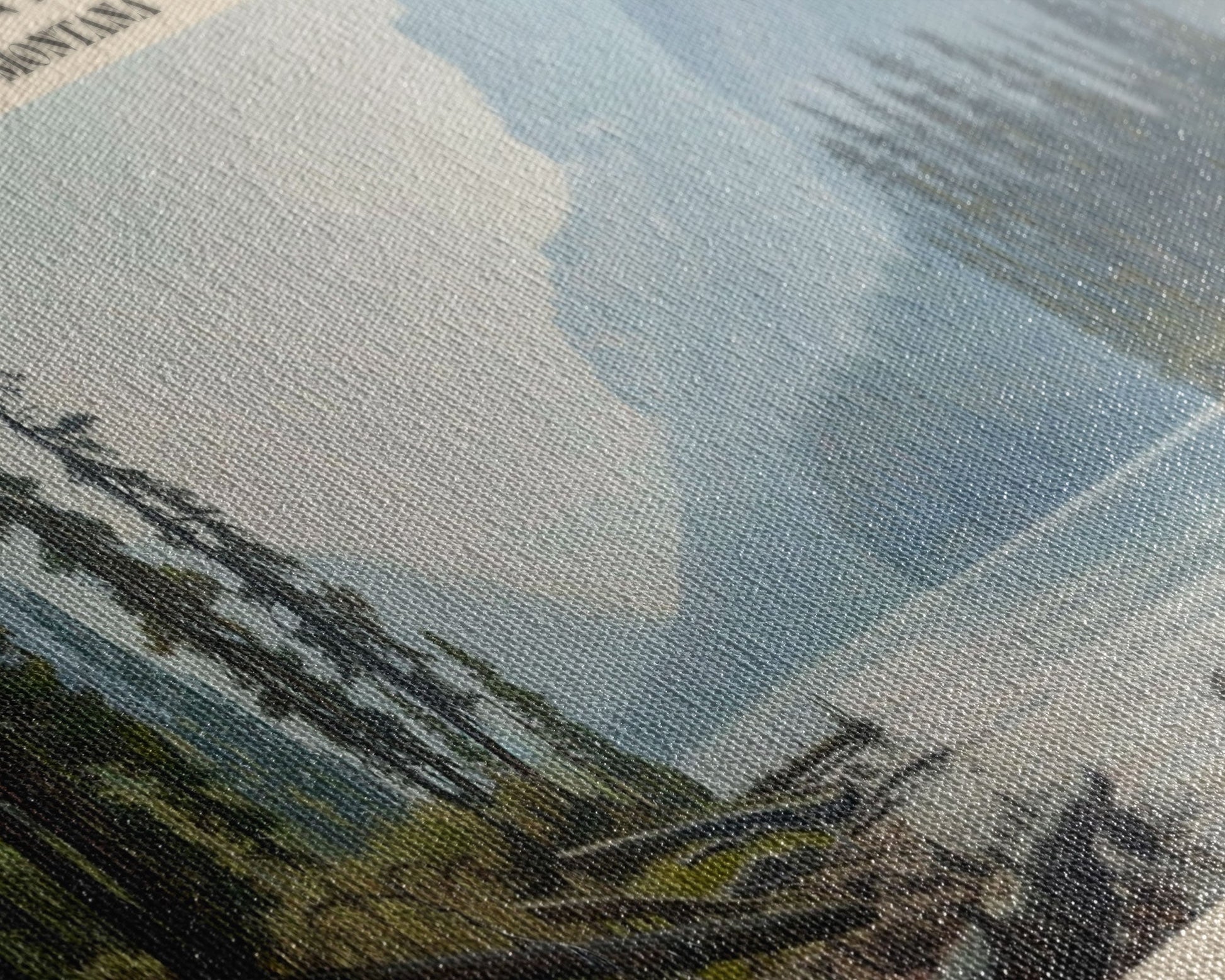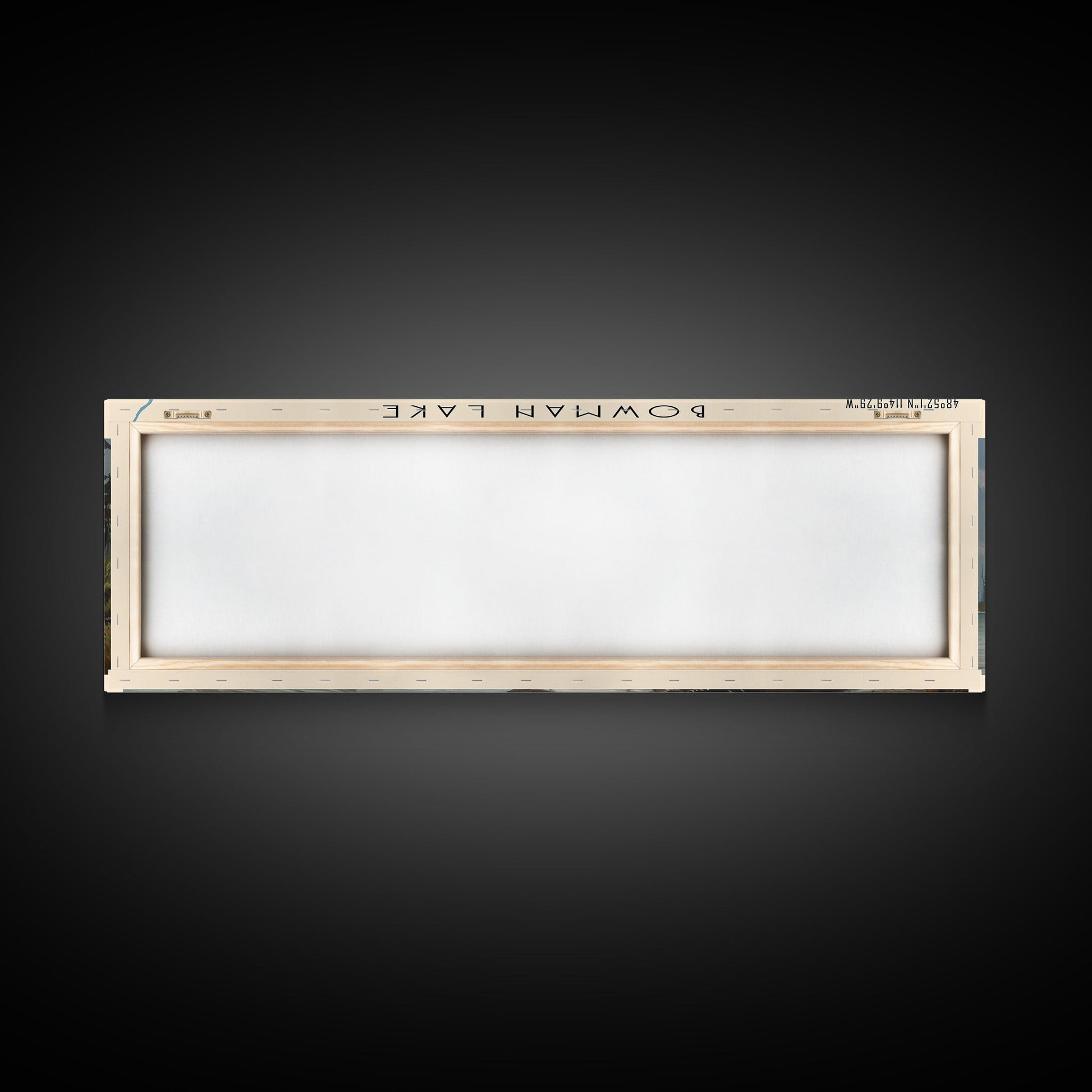 Bowman Lake Montana Framed Canvas Print, Panoramic Lake House Decor, Wall Art, Travel Poster, Rustic Lake Painting, Nature Art