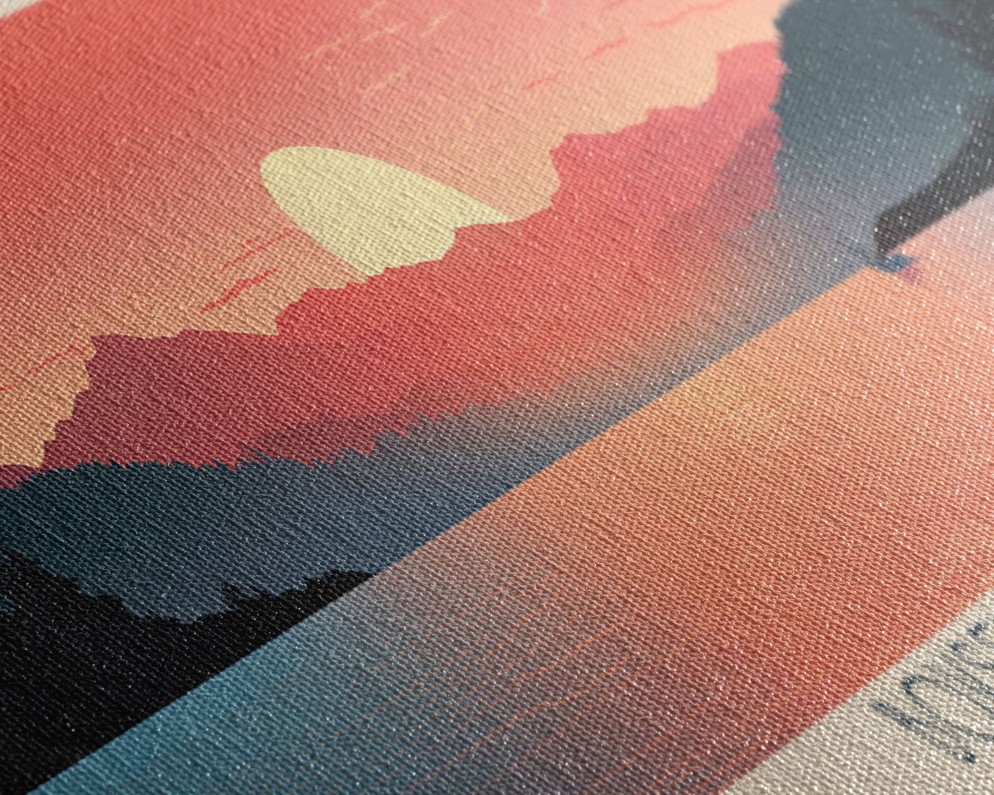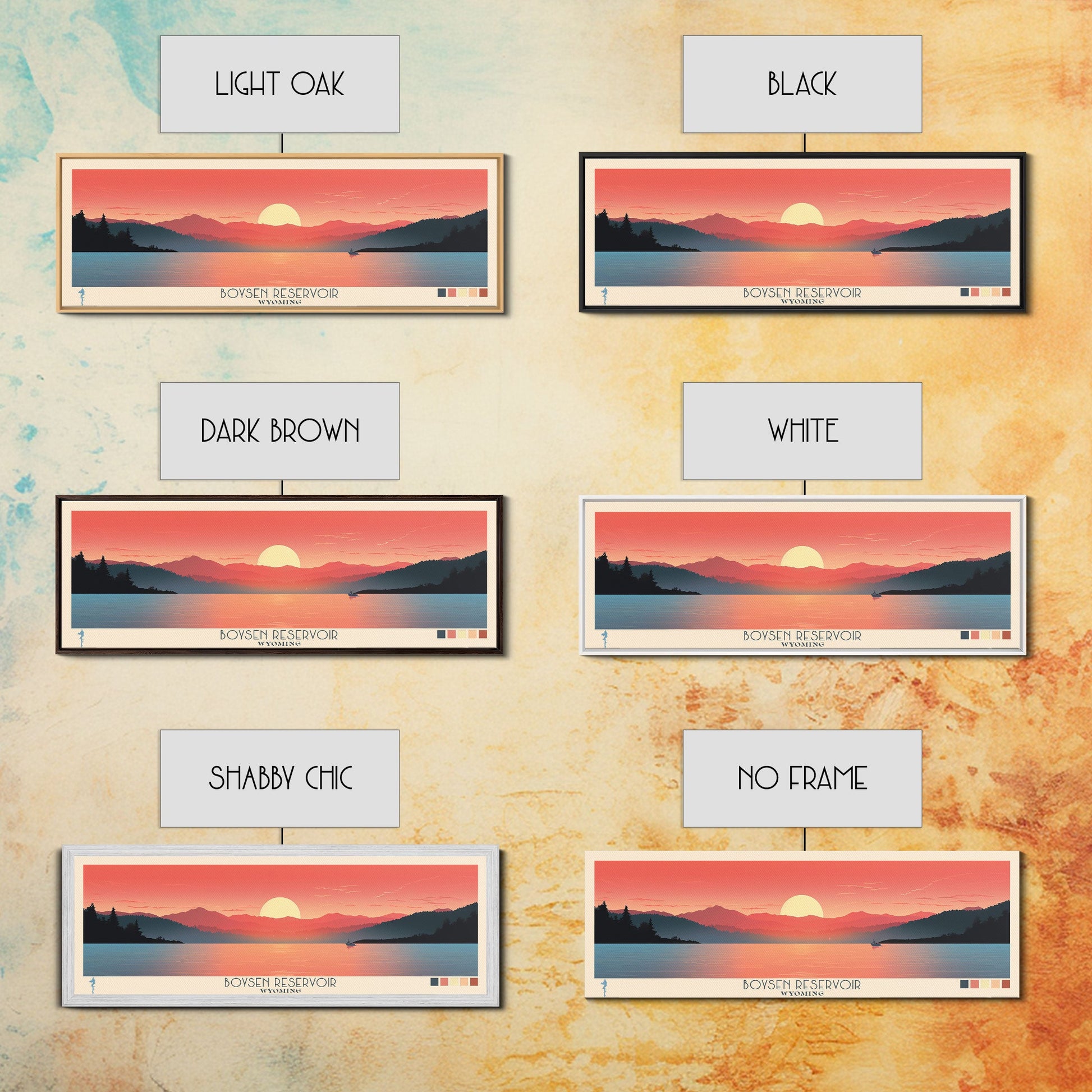 Boysen Reservoir Wyoming Framed Canvas Print, Panoramic Travel Poster, Midcentury Modern Wall Art, Pop Art, Nature Bedroom Decor, Scenic Lake House Art