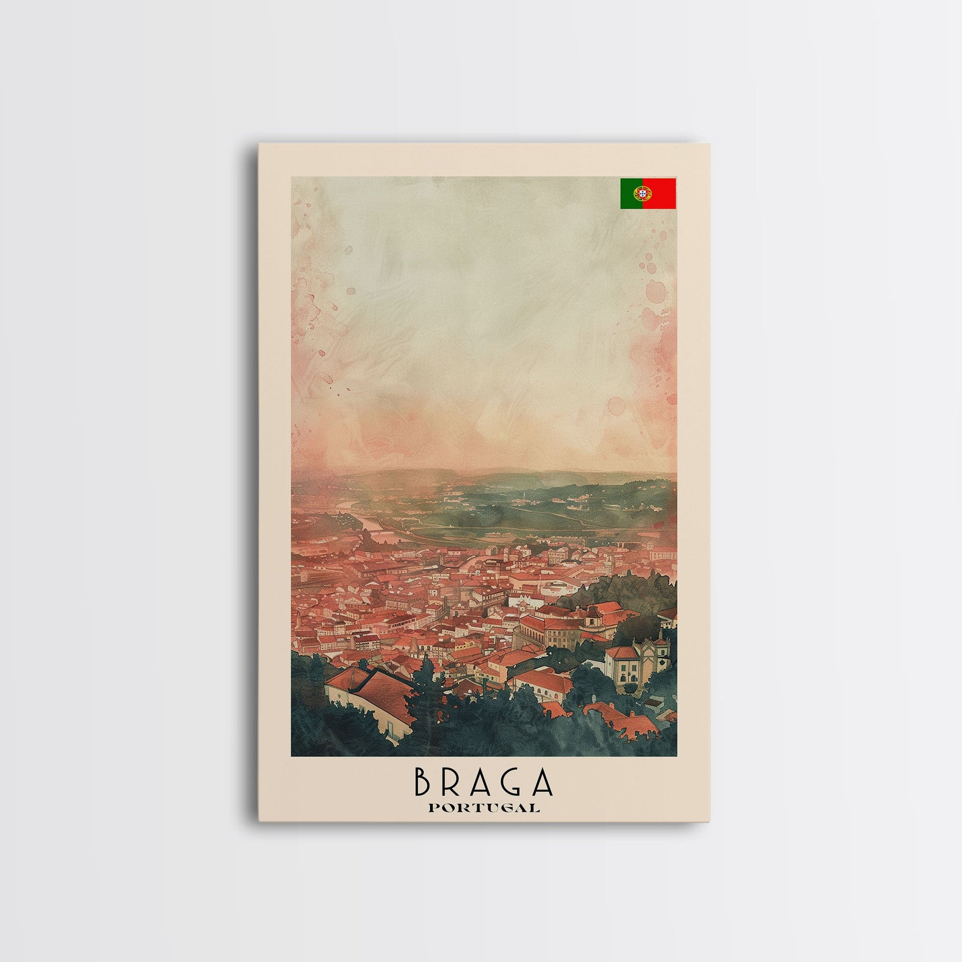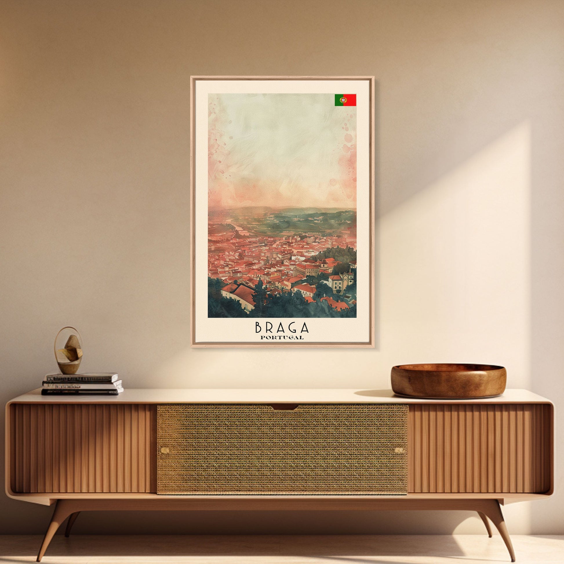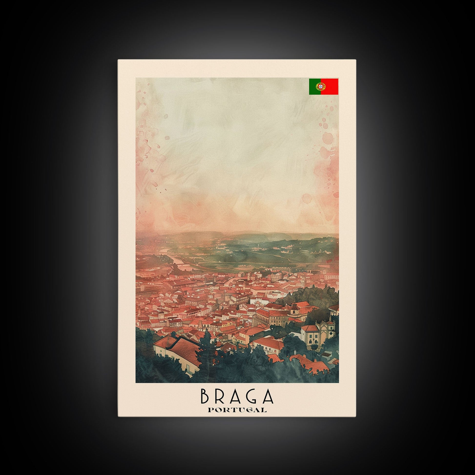 Braga Portugal Travel Poster Framed Canvas Print, Wall Art, Home Decor, Travel Print, Sunset Scene, Boho Art, Original Art