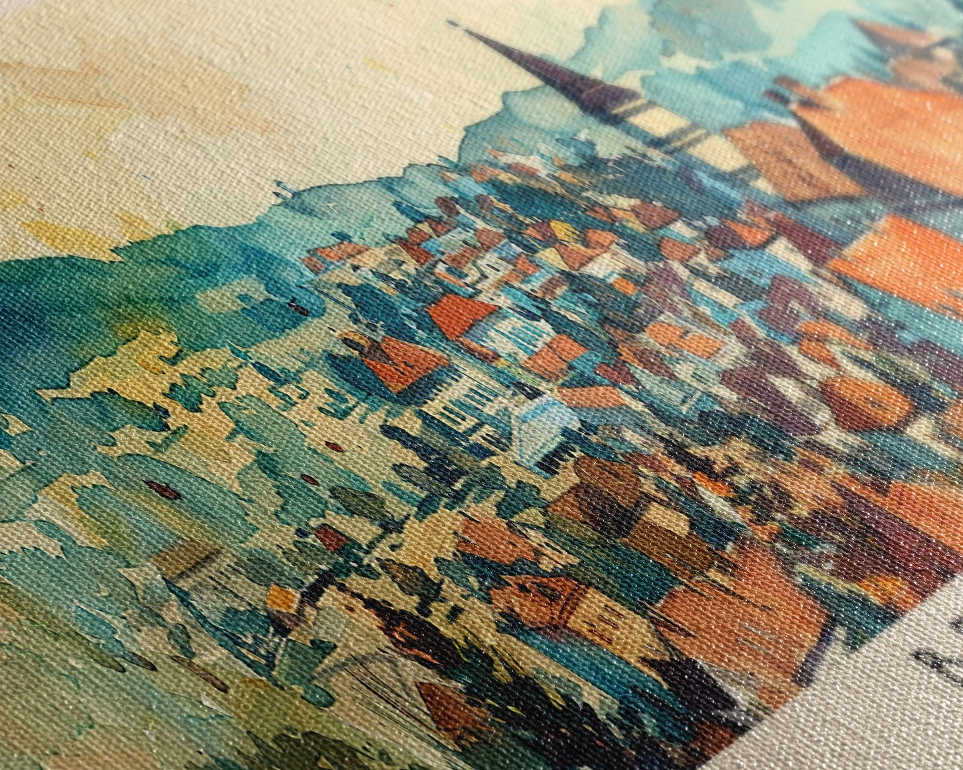 Most of our canvases are made in the USA, with the exception of canvases ordered with the light oak unstained frames, and any large canvases (24x48, 30x60, 16x48 and 20x60) ordered WITH a frame. These are temporarily made in and shipped from Europe, while we try to find a more consistent supplier in the USA.