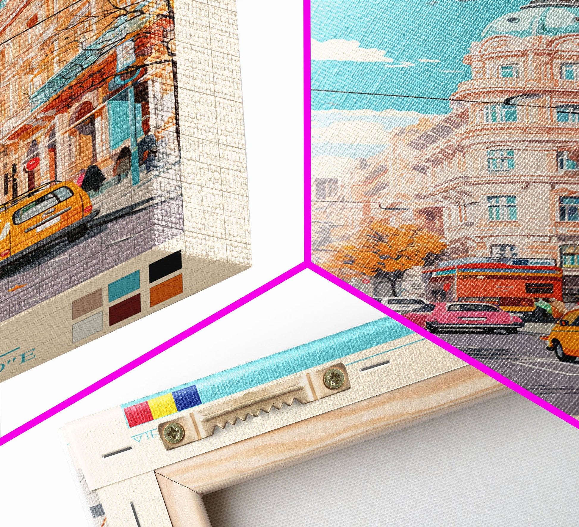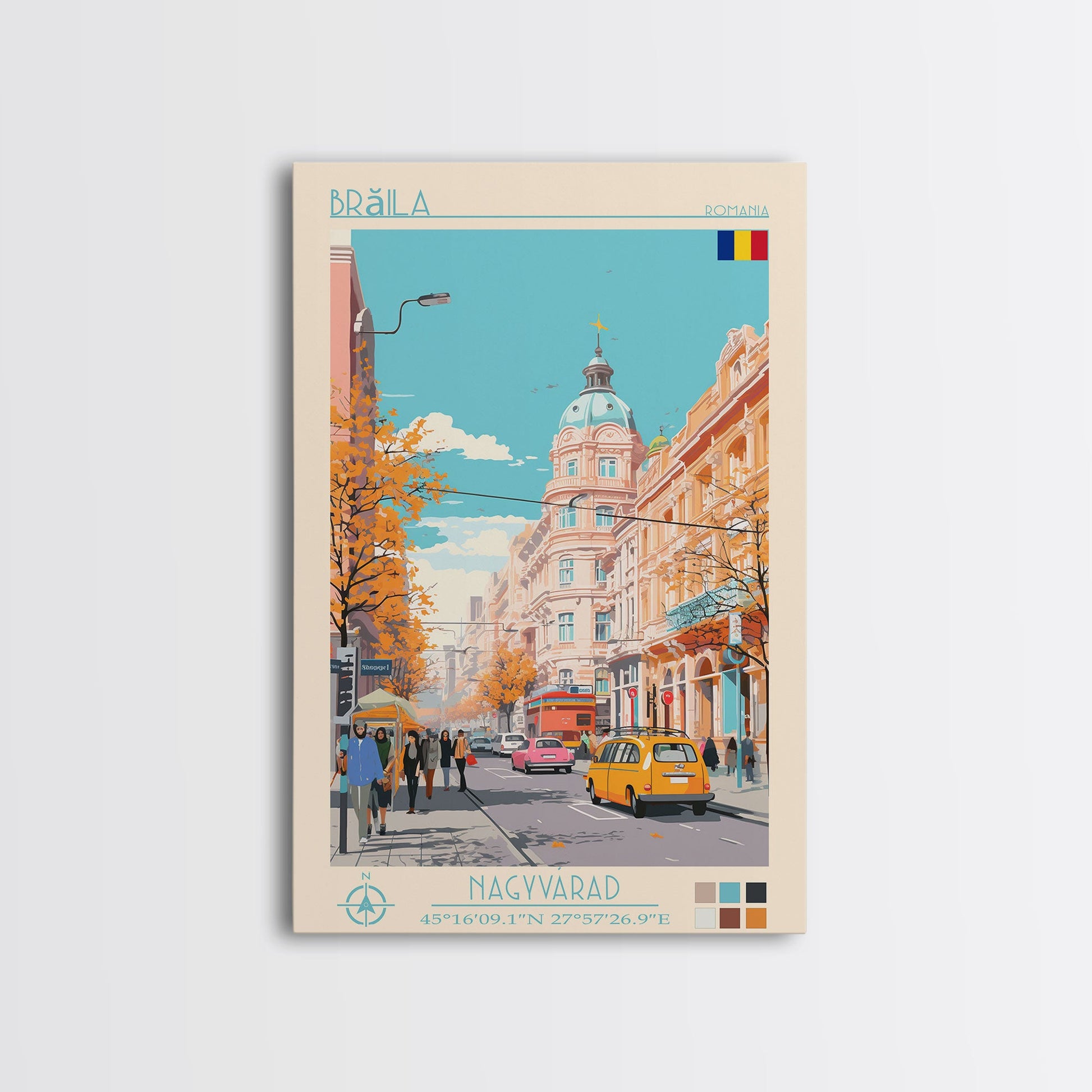 Brăila Romania Travel Poster Framed Canvas Print, Midcentury Modern Art, Pop Art Wall Decor, Home Decor, Vacation Gift, Living Room Art