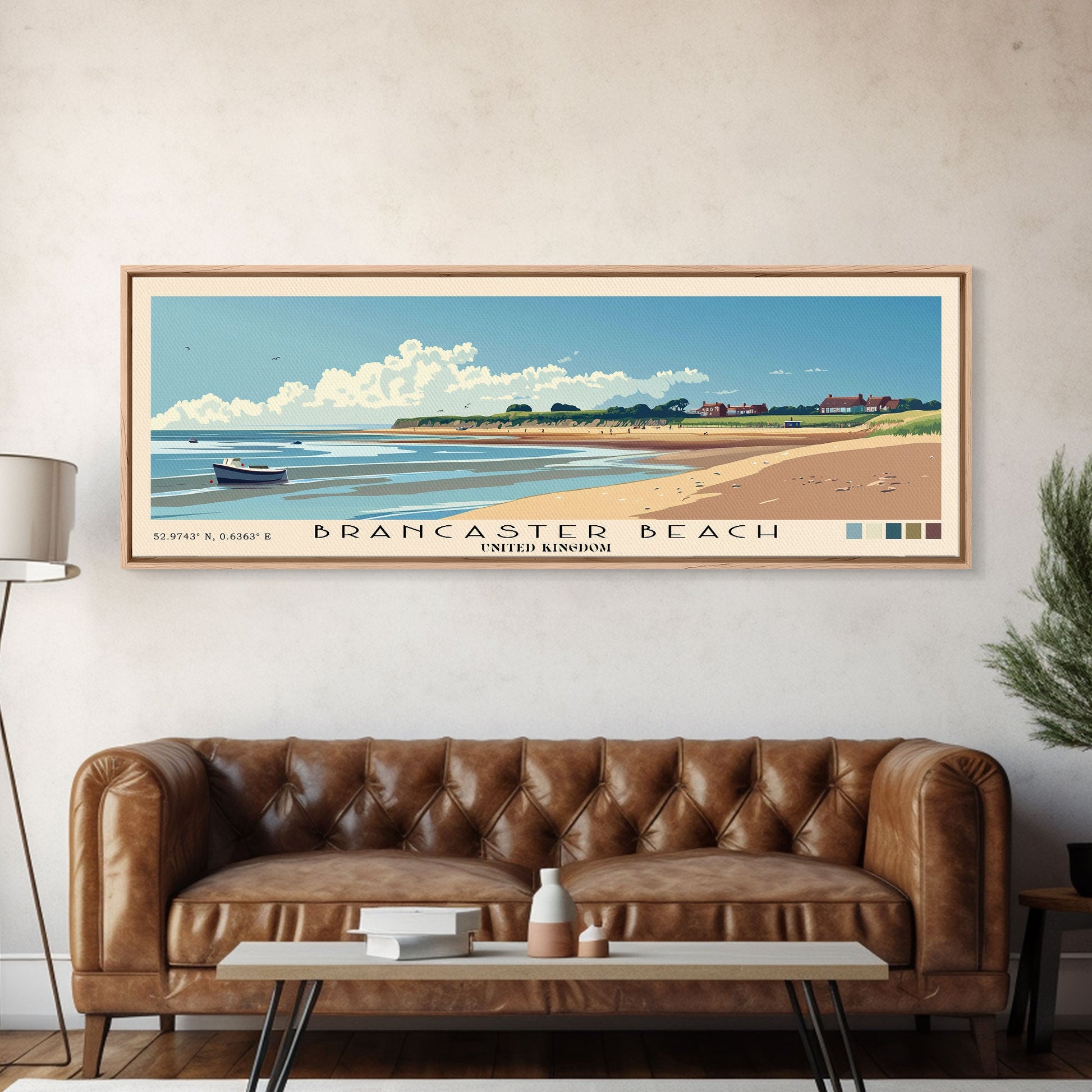 Brancaster Beach, United Kingdom Panoramic Beach Print, Vacation Gift, United Kingdom Wall Art, Framed Canvas Print, Framed Beach Painting