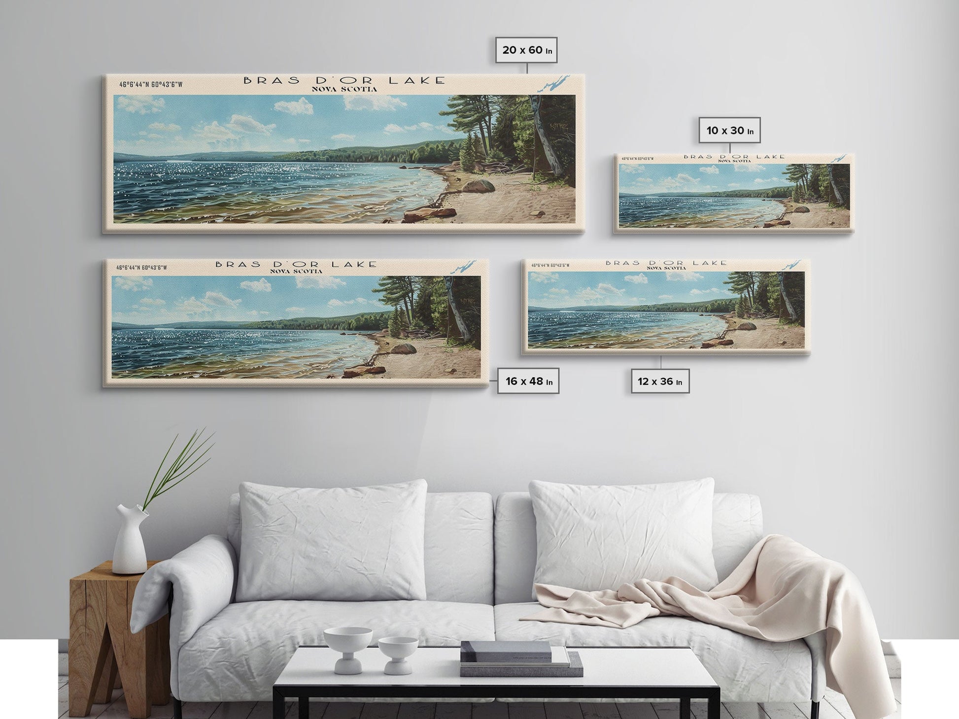 Bras d'Or Lake Framed Canvas Print, Panoramic Lake House Decor, Wall Art, Travel Poster, Rustic Lake Painting, Home Decor
