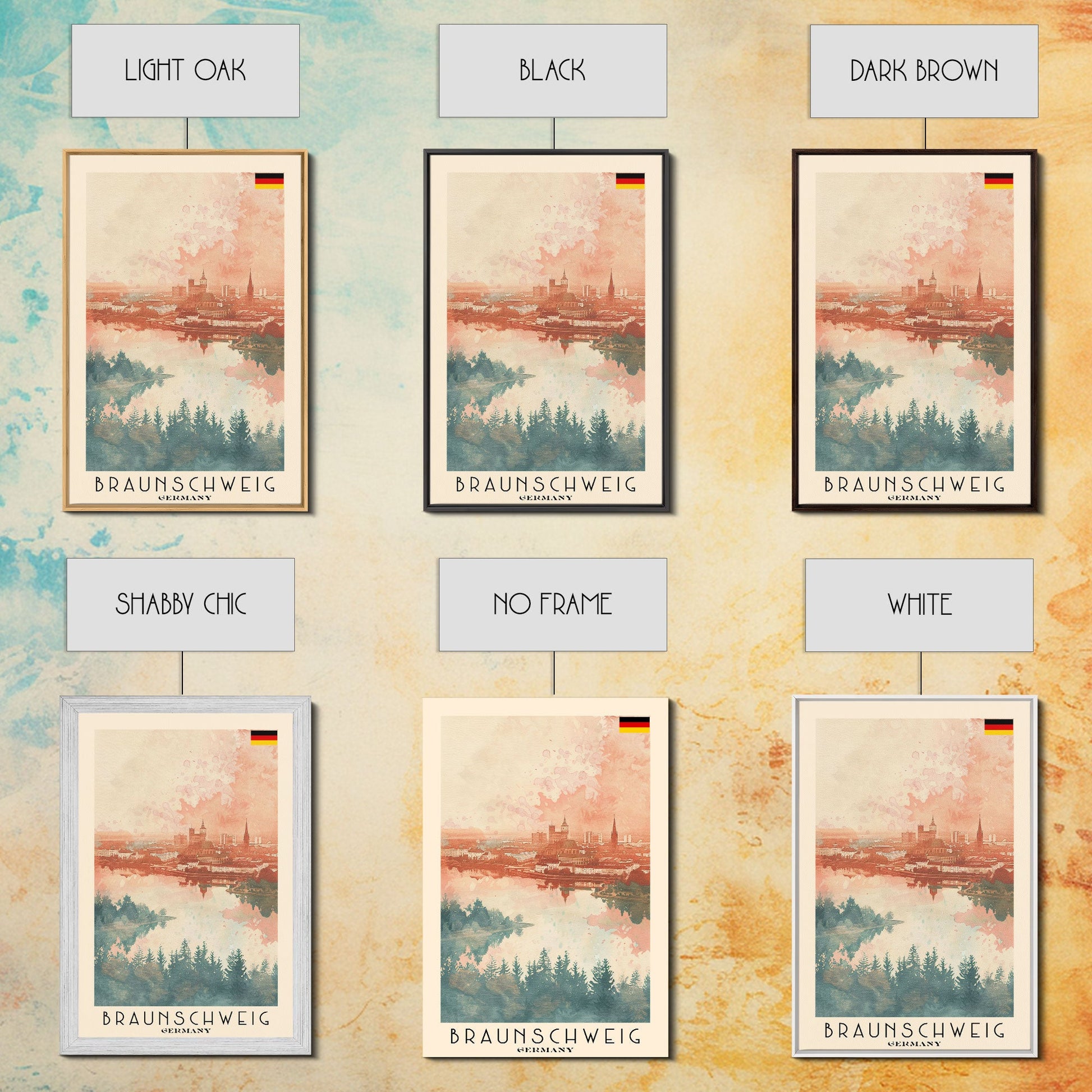 Braunschweig Germany Travel Poster Framed Canvas Print, Cityscape Art, Wall Decor, Travel Print, Watercolor Painting, Urban Scene Art