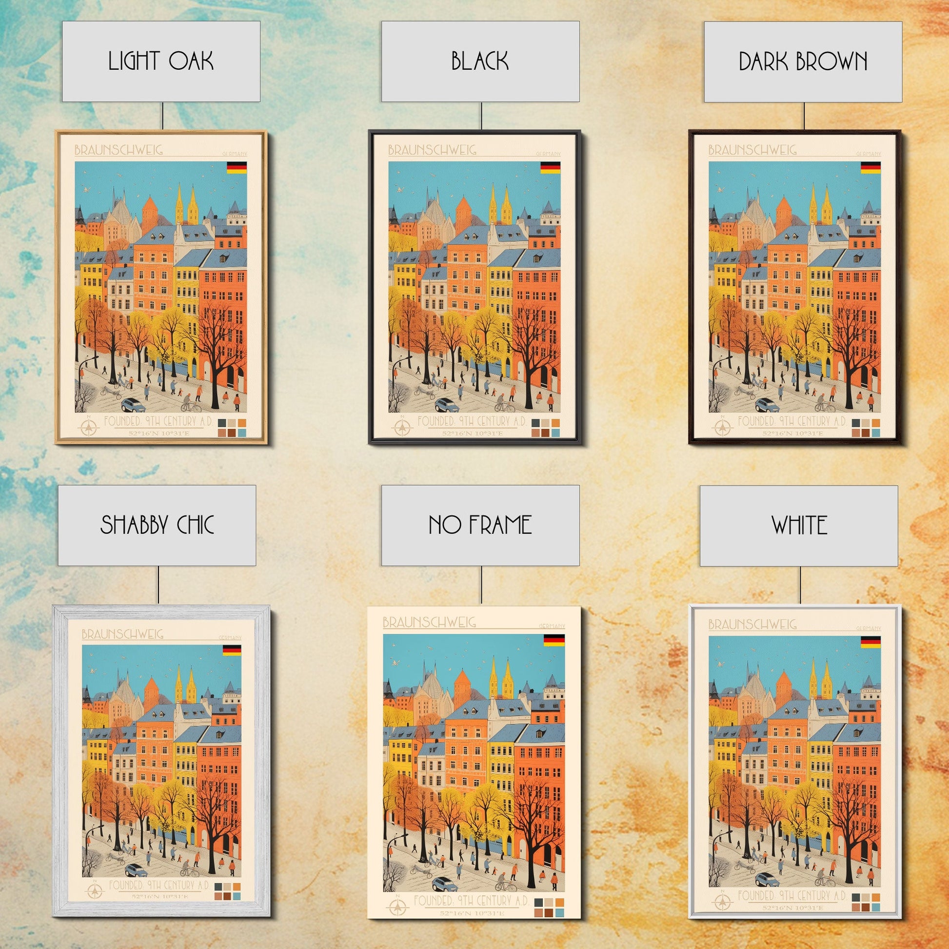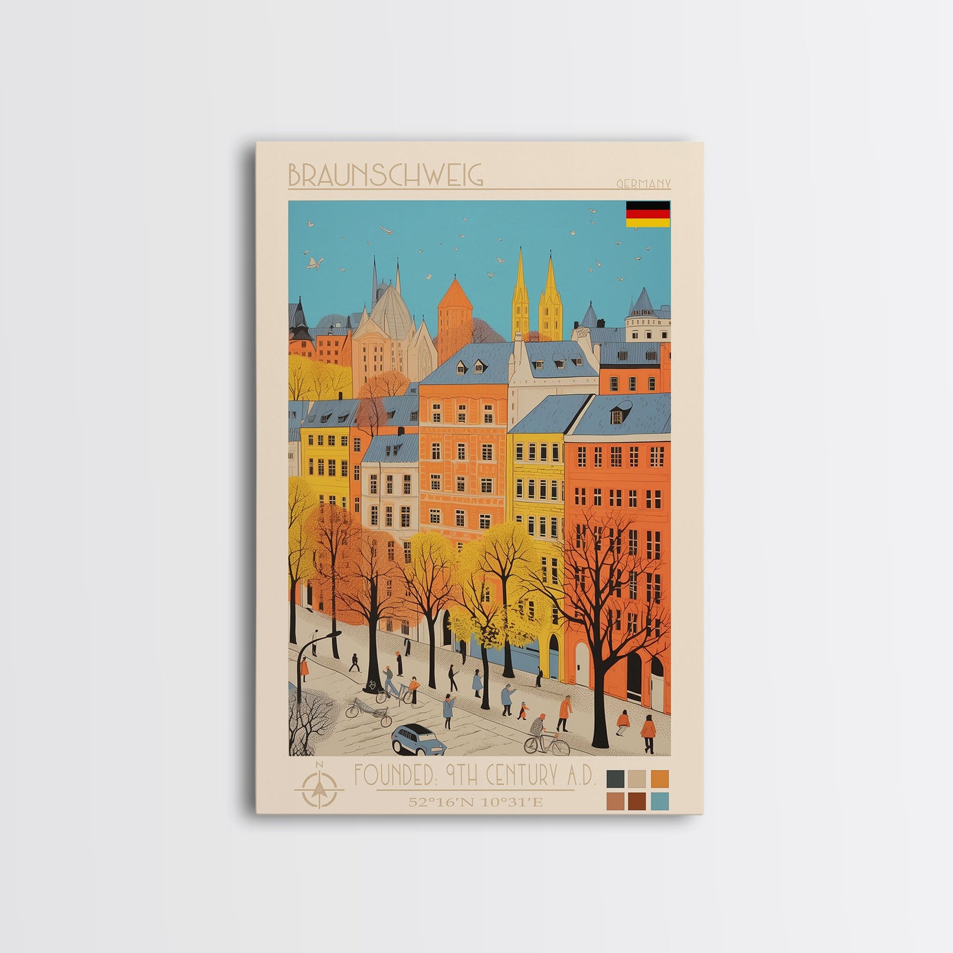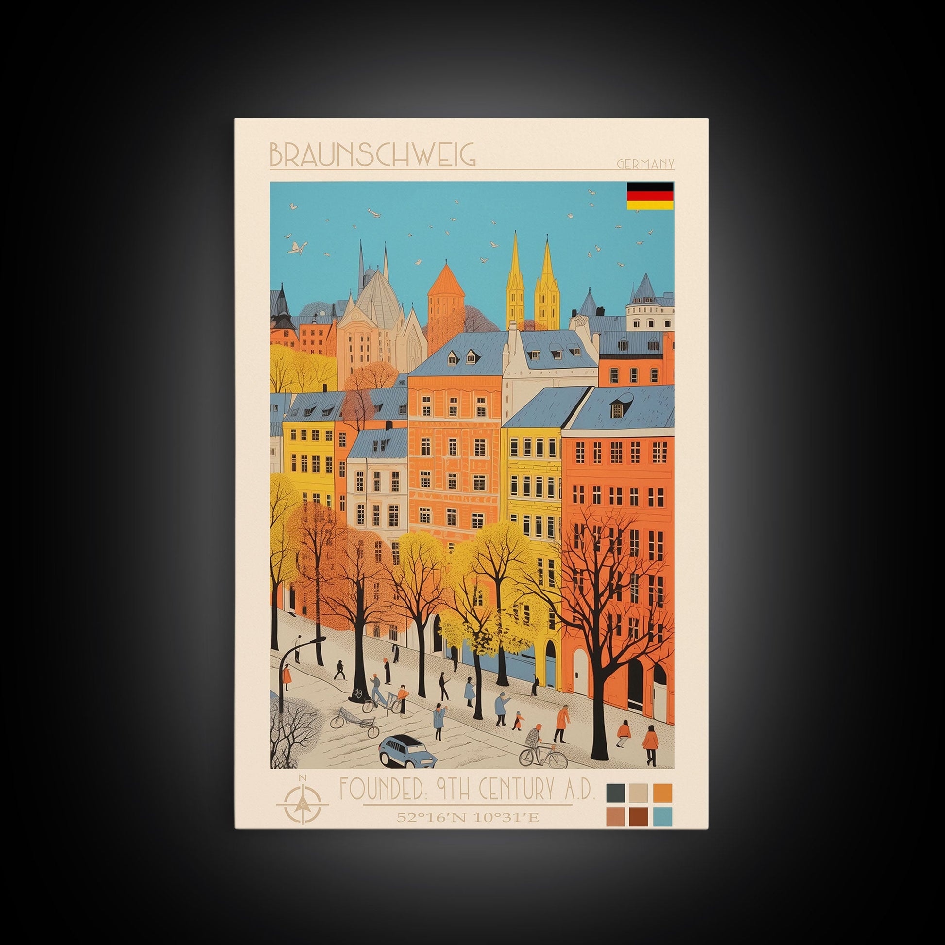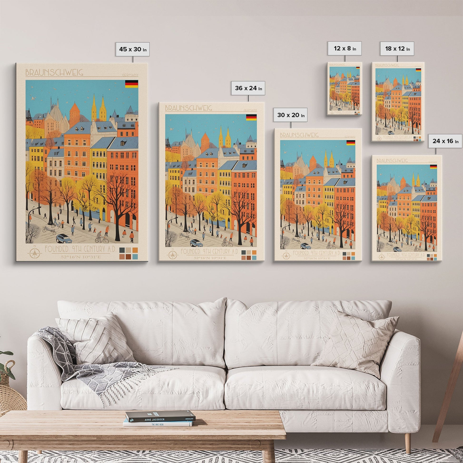 Braunschweig Germany Travel Poster Framed Canvas Print, Midcentury Modern Art, Pop Art Wall Decor, Scenic Wall Art, Home Decor, Living Room Art