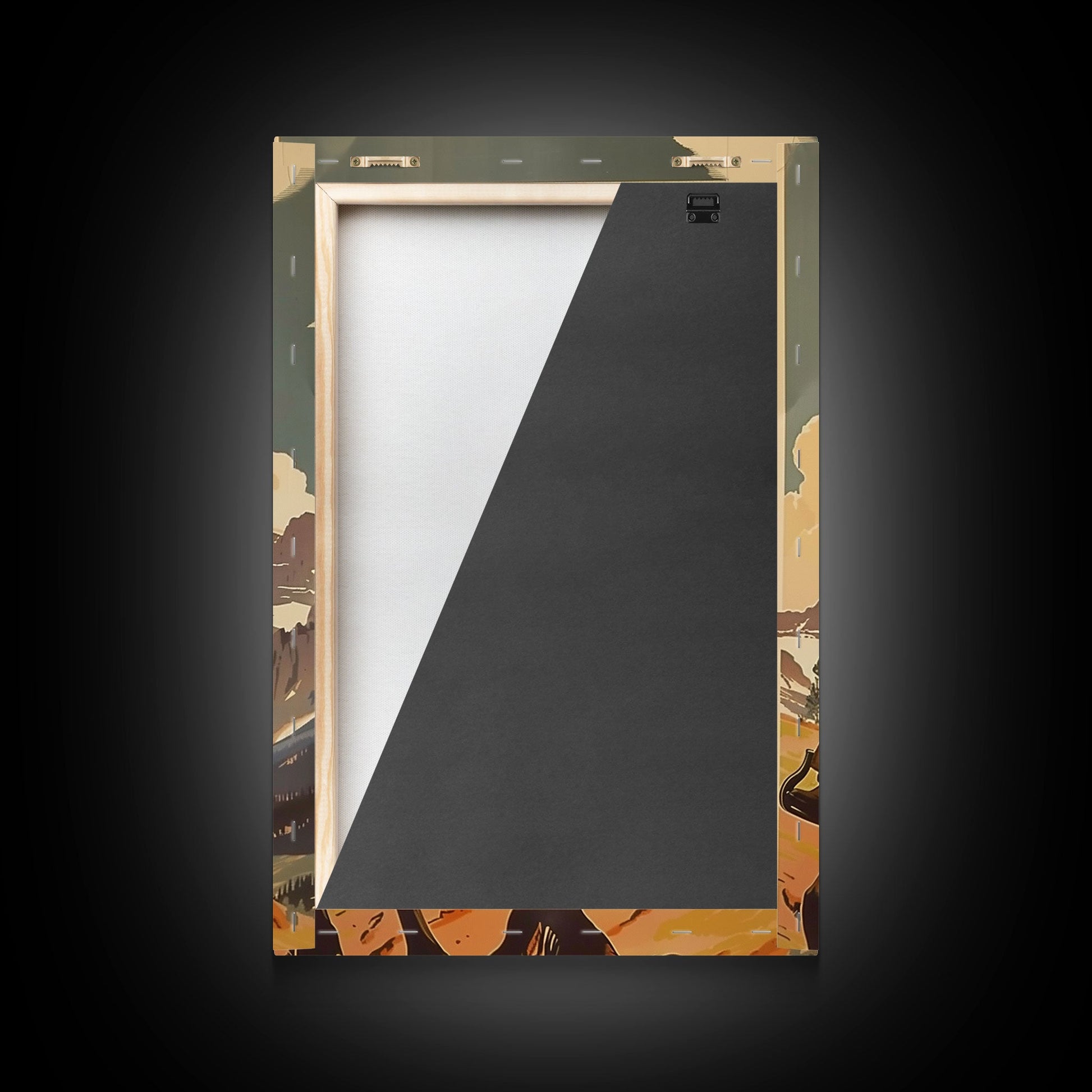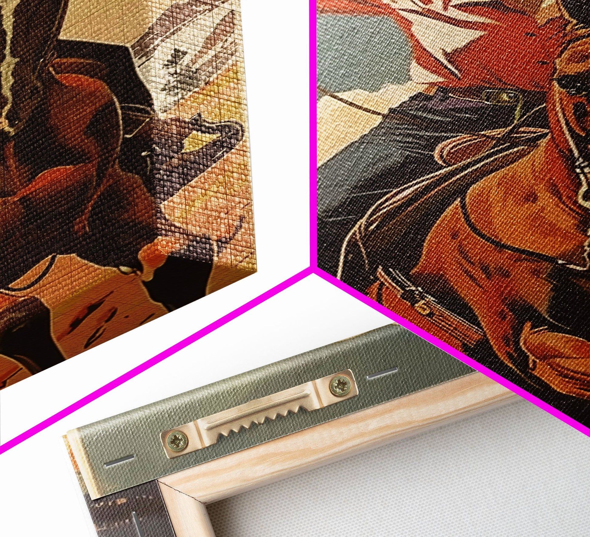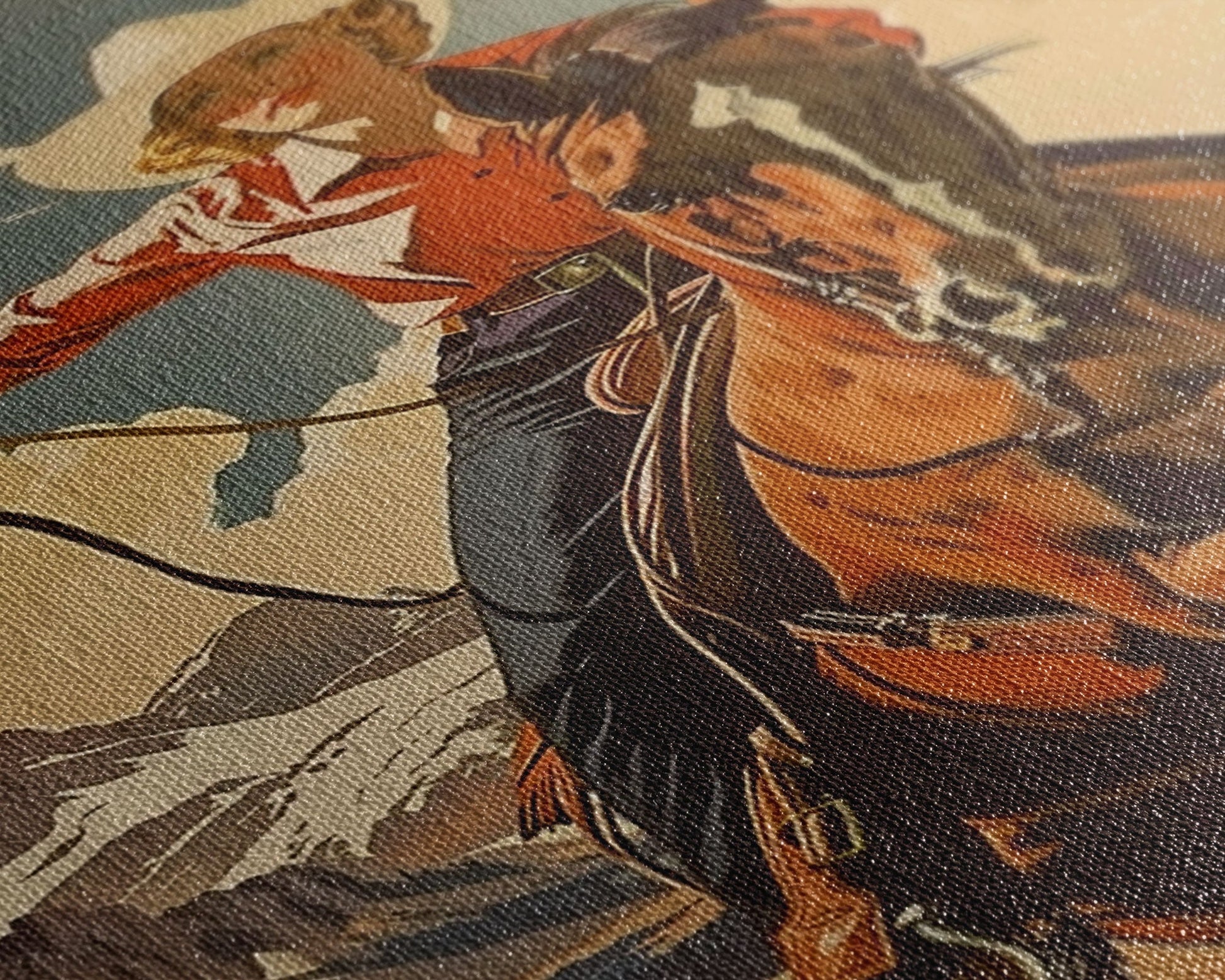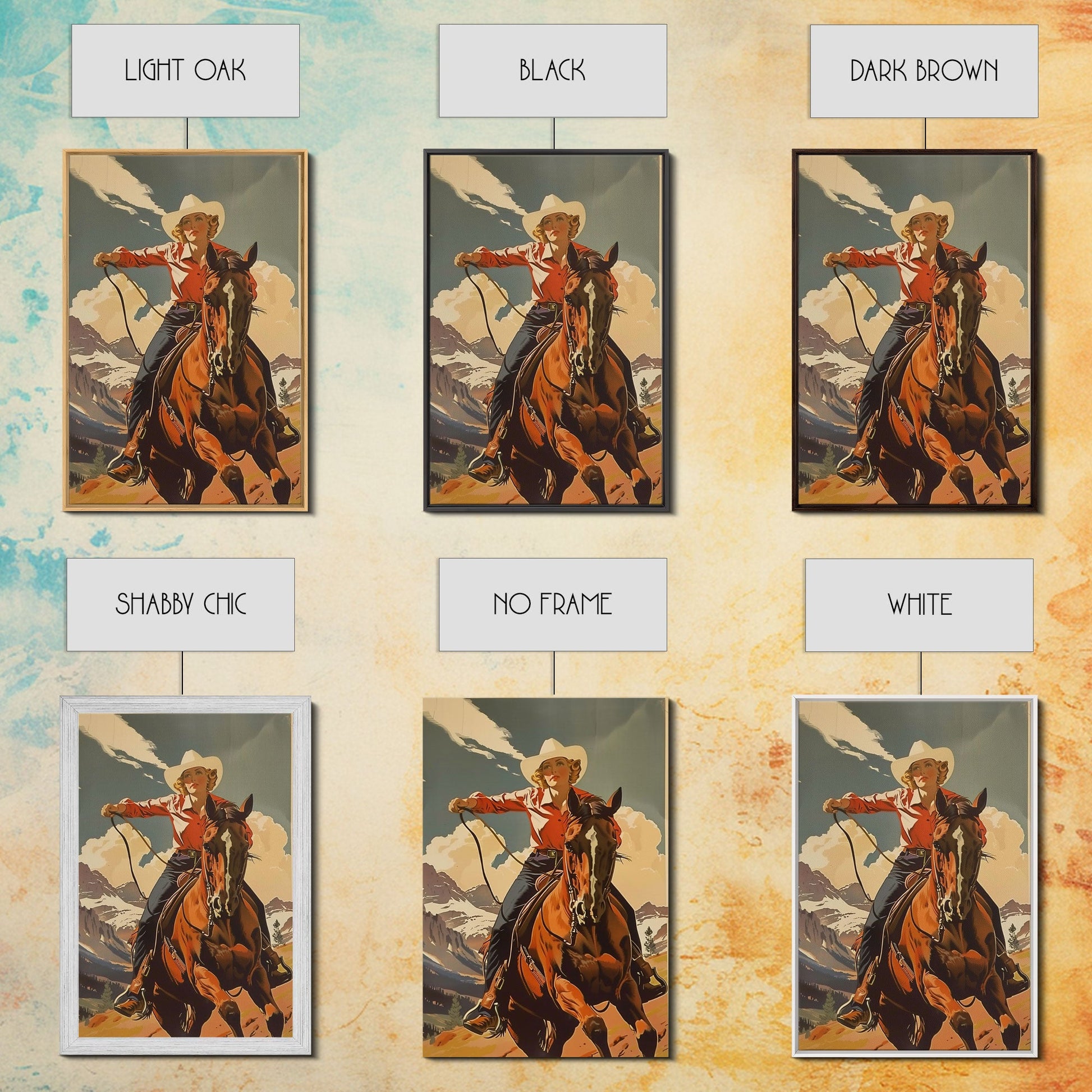 Brave Cowgirl in Mountains with Horse | Framed Canvas Print | Western Wall Art | Living Room Decor | Rustic Home Decor