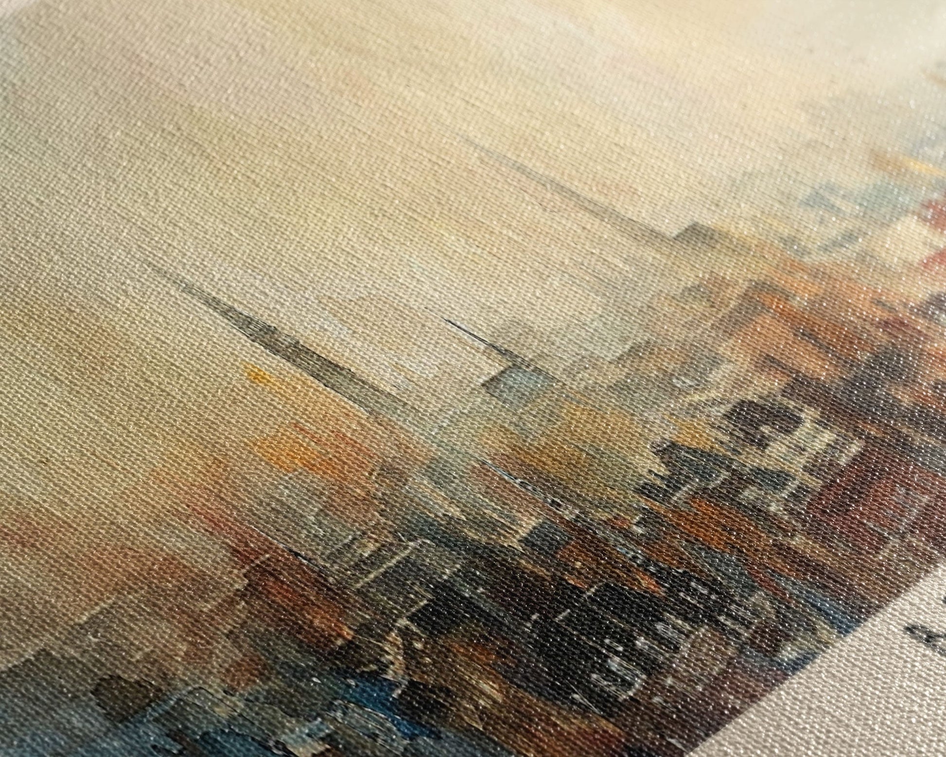 Most of our canvases are made in the USA, with the exception of canvases ordered with the light oak unstained frames, and any large canvases (24x48, 30x60, 16x48 and 20x60) ordered WITH a frame. These are temporarily made in and shipped from Europe, while we try to find a more consistent supplier in the USA.