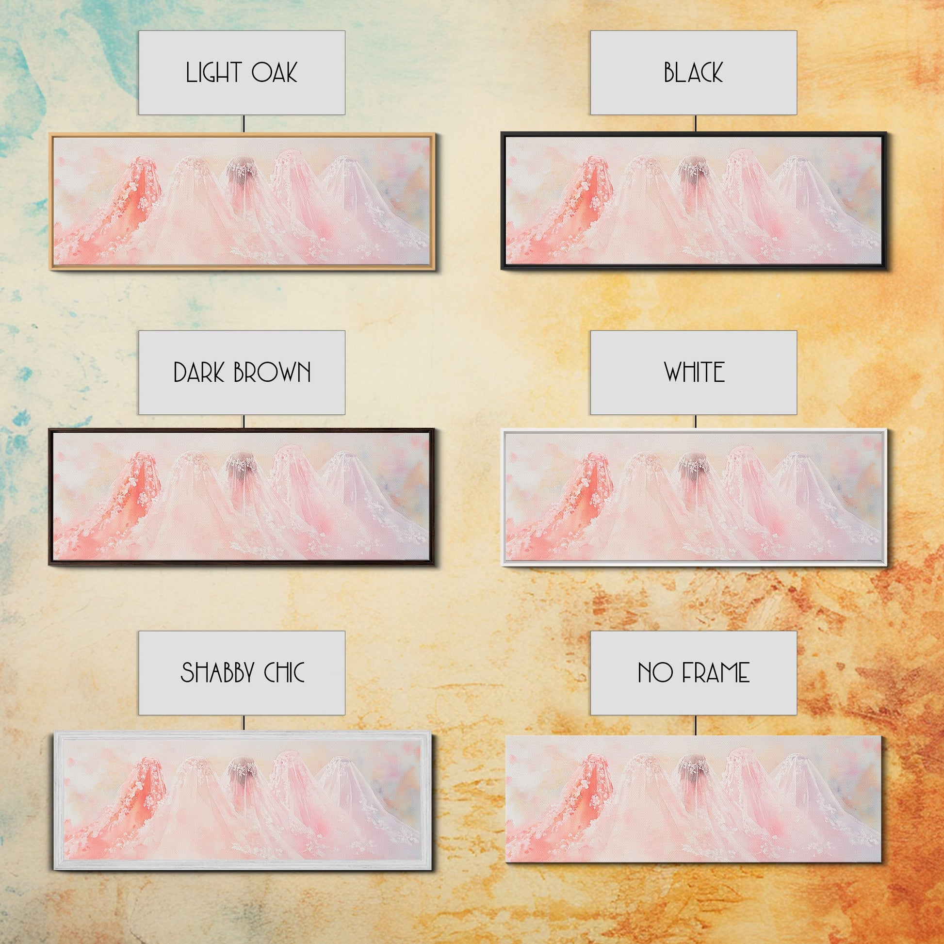 Bridal Veil Light Pink Wall Art Framed Canvas Print Horizontal Wedding Rustic Decor Extra Wide Artwork Bedroom Art