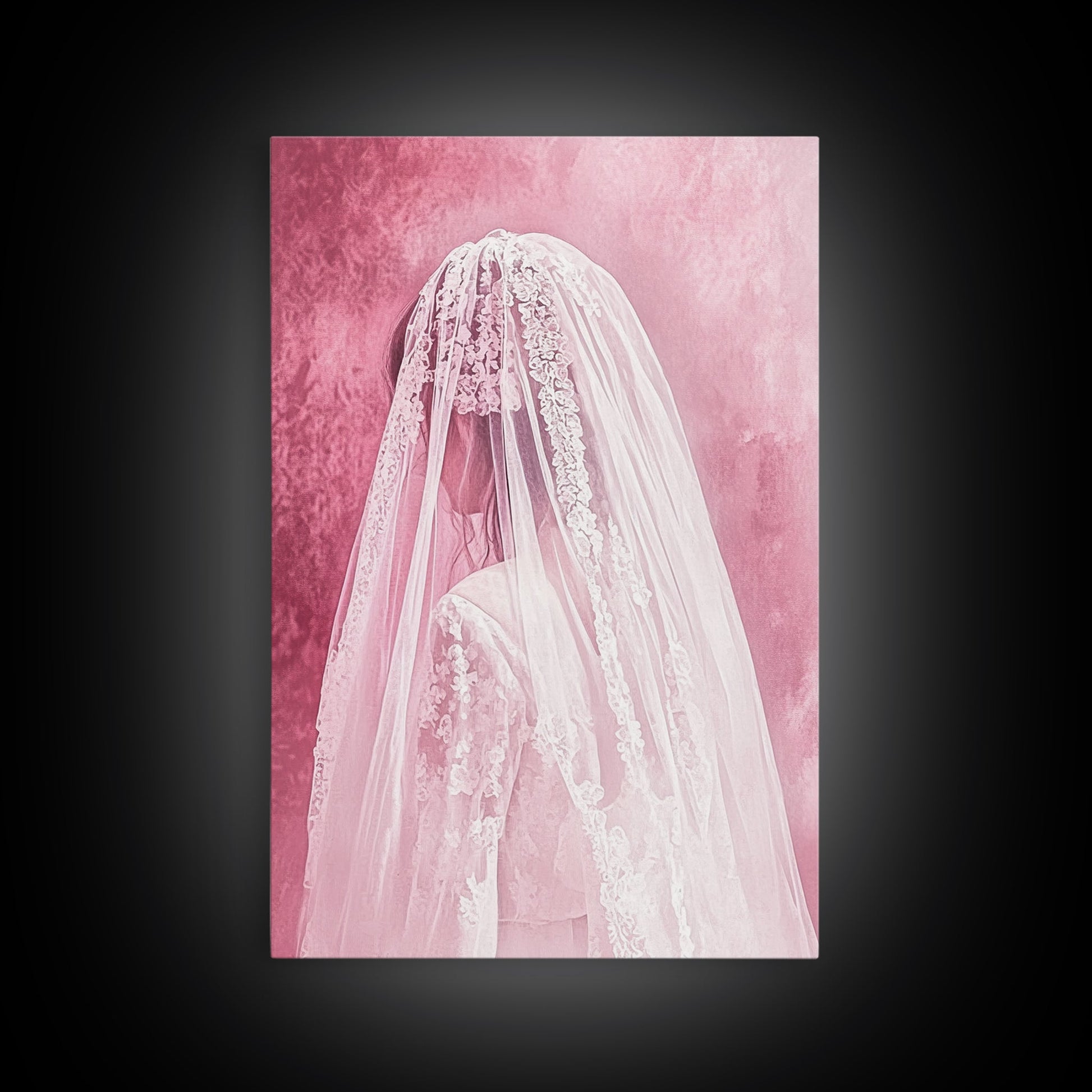 Bride Silhouette Canvas Print Angel Art Prints Pink Wall Art Bedroom Decor Romantic Artwork Wedding Gift Light Pink Art
