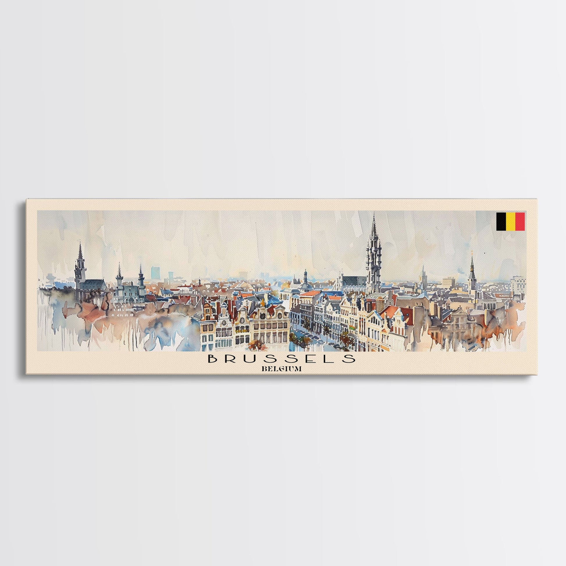 Bruges Belgium Panoramic Travel Poster, Framed Canvas Print or Metal Wall Art, Travel Art, Home Decor, Panoramic Painting, Midcentury Art