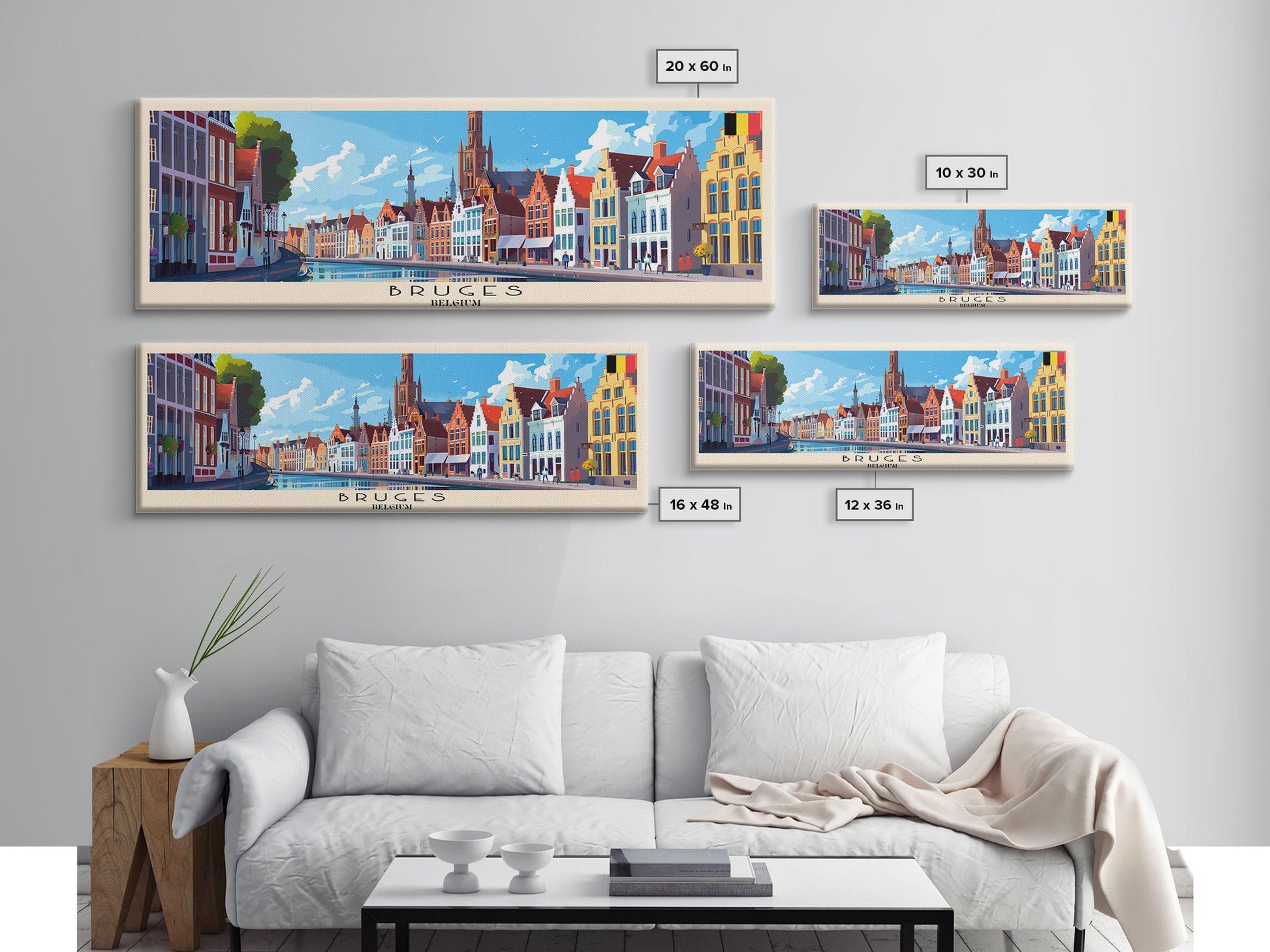 Bruges Belgium Travel Art, City Art, Framed Canvas Print or Metal Wall Art, Europe Travel Poster, Panoramic Wall Art, Extra Wide Wall Art
