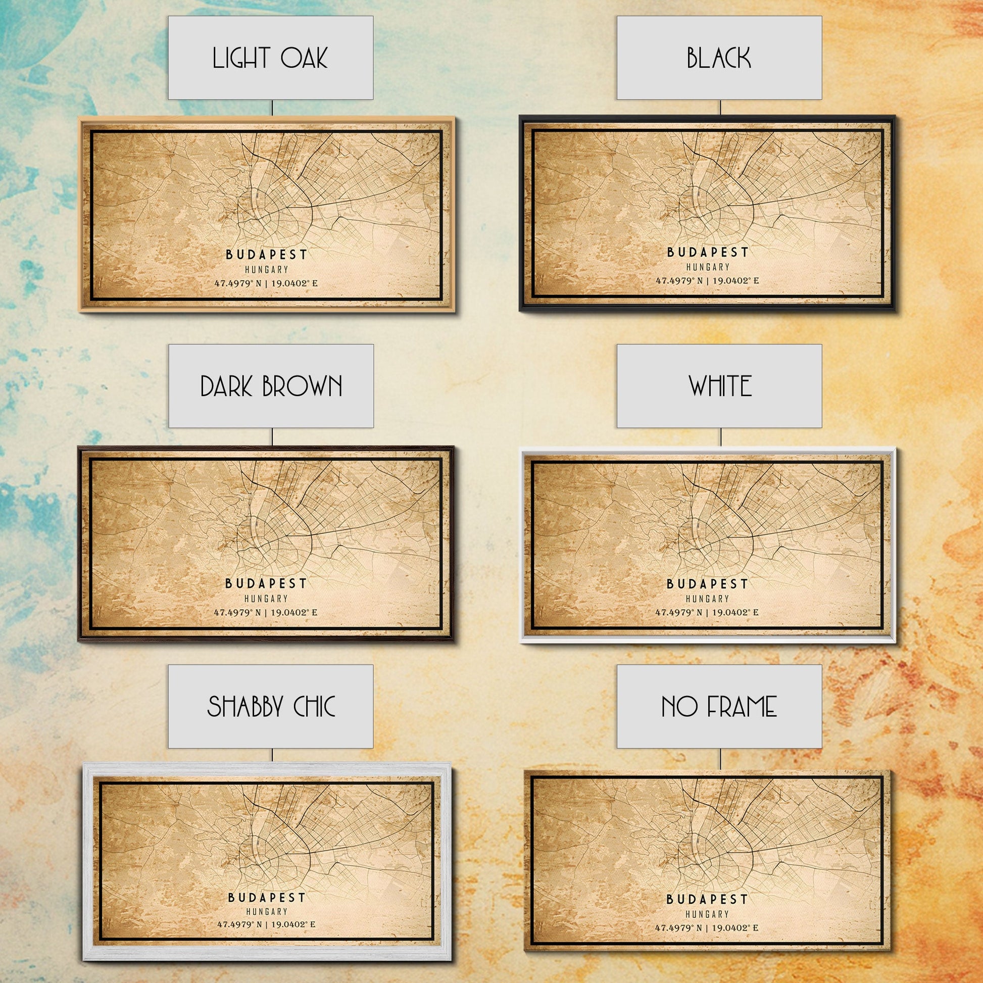 Budapest Hungary map print poster or framed canvas, Budapest map print poster canvas, Budapest map print poster canvas, Vintage Travel Art
