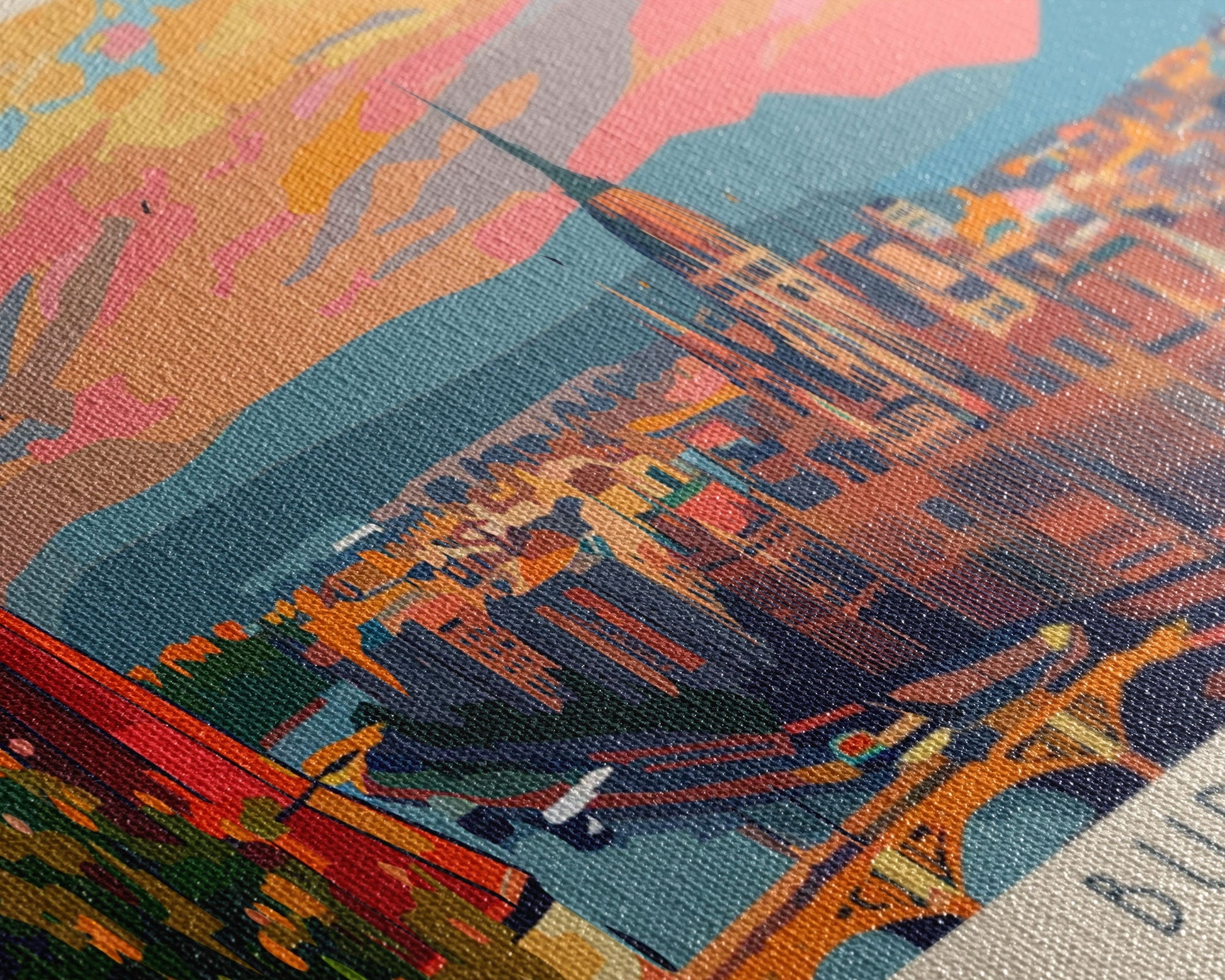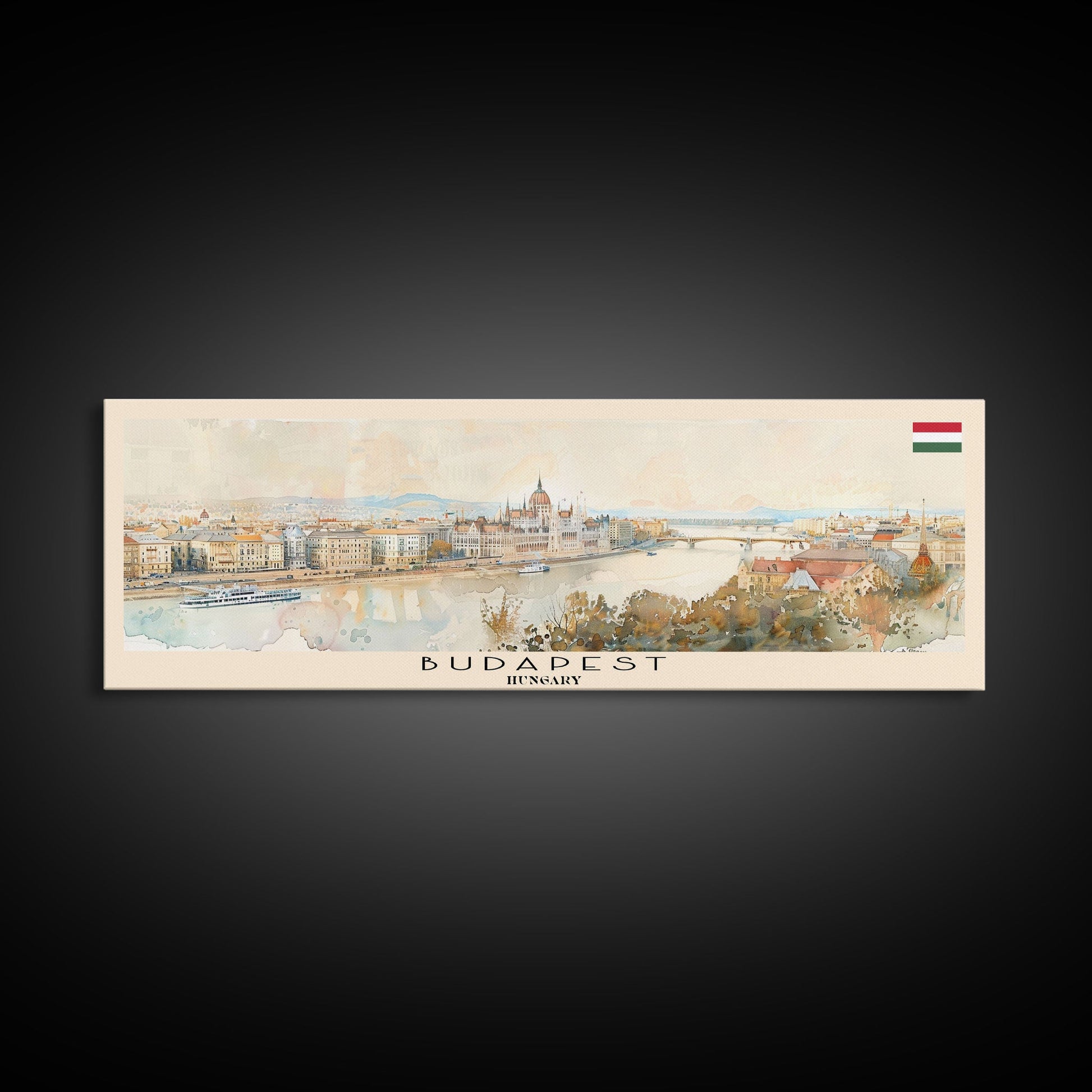 Budapest Hungary Travel Art, City Art, Framed Canvas Print or Metal Wall Art, Europe Travel Poster, Panoramic Wall Art, Extra Wide Wall Art